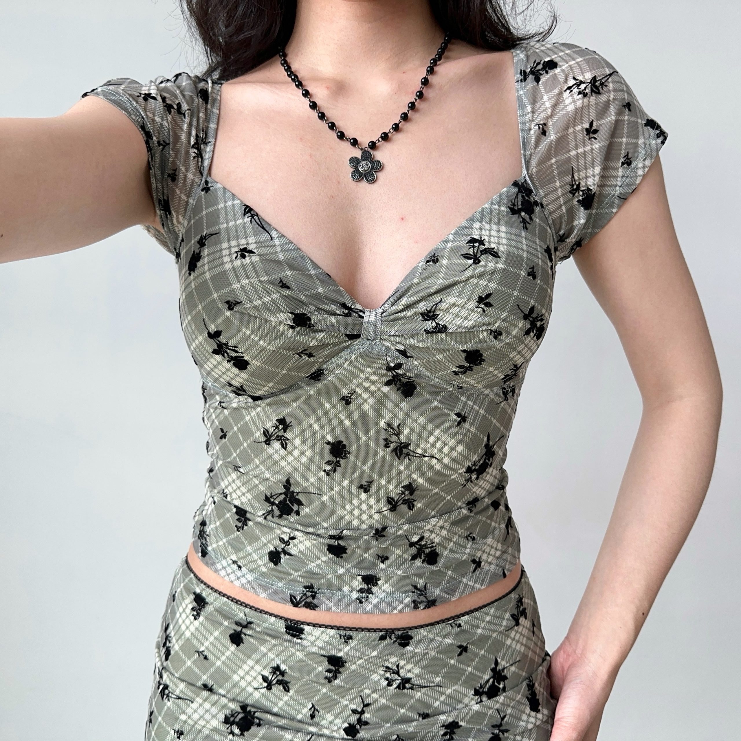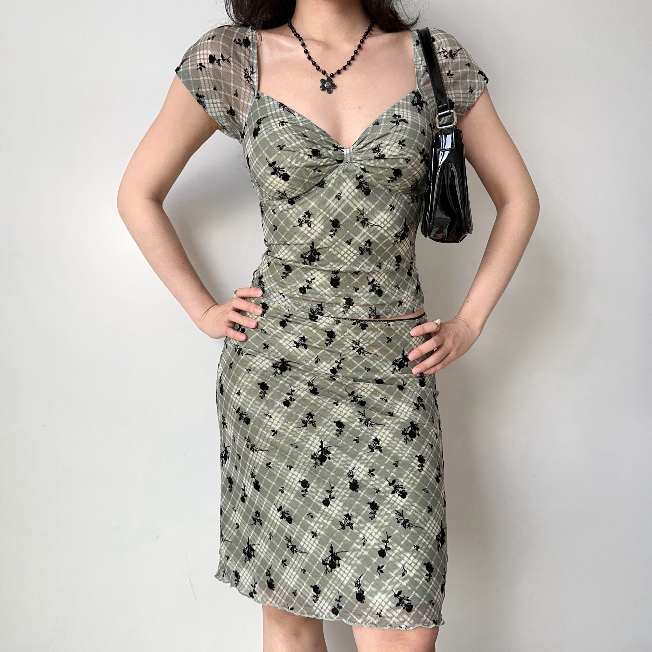 Retro Velvet Plaid Short Sleeve T- Shirt Bodycon Skirt Set W – Outfit Ideas