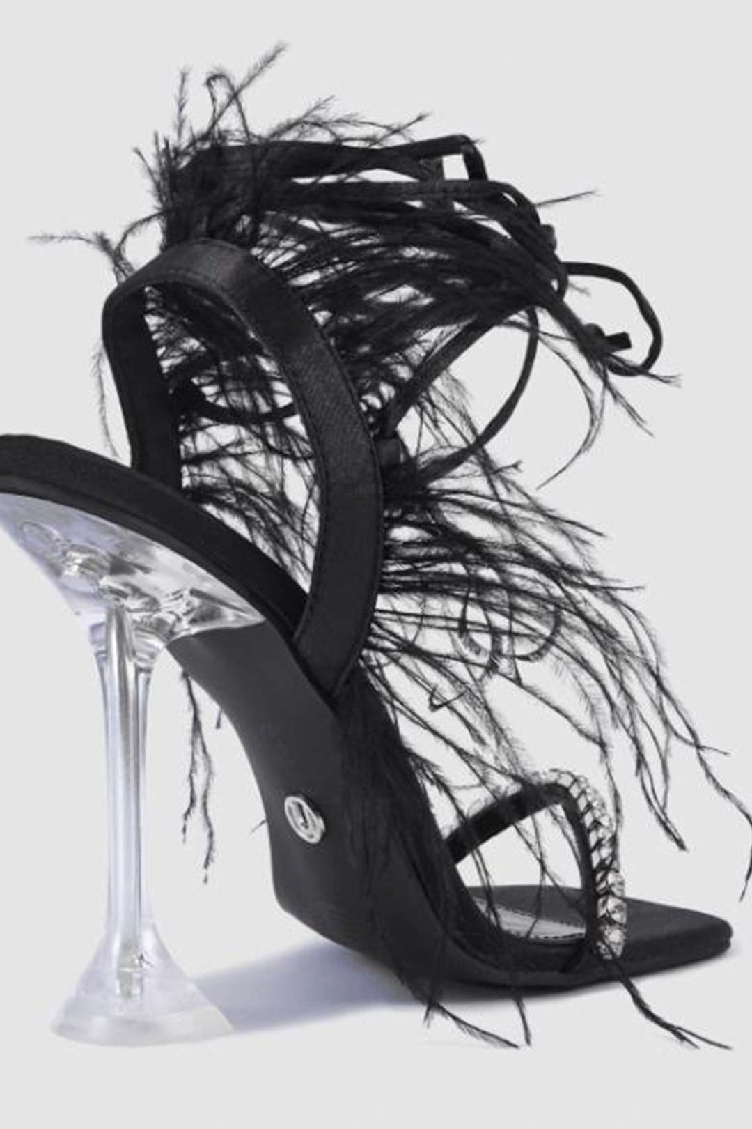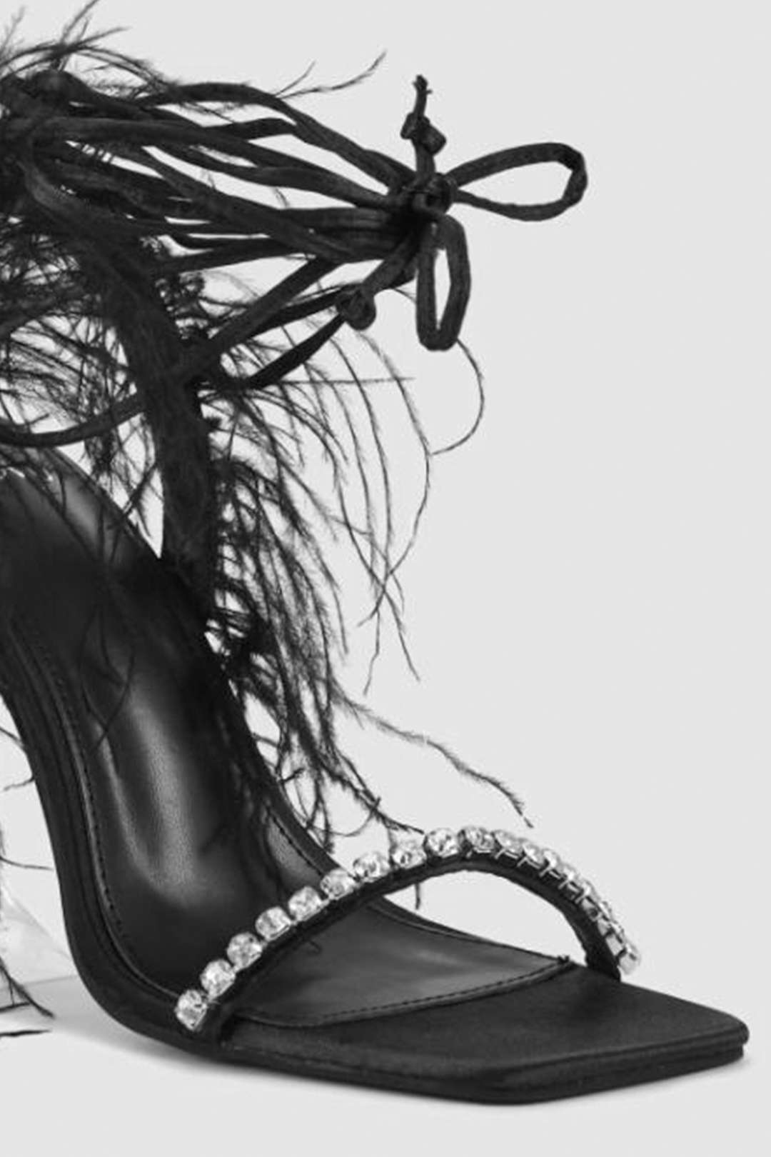 Ready to elevate your fashion game? Shop now and step into a world of endless outfit possibilities with our Rhinestone Embellished Feather Lace-Up High Heel Sandals!