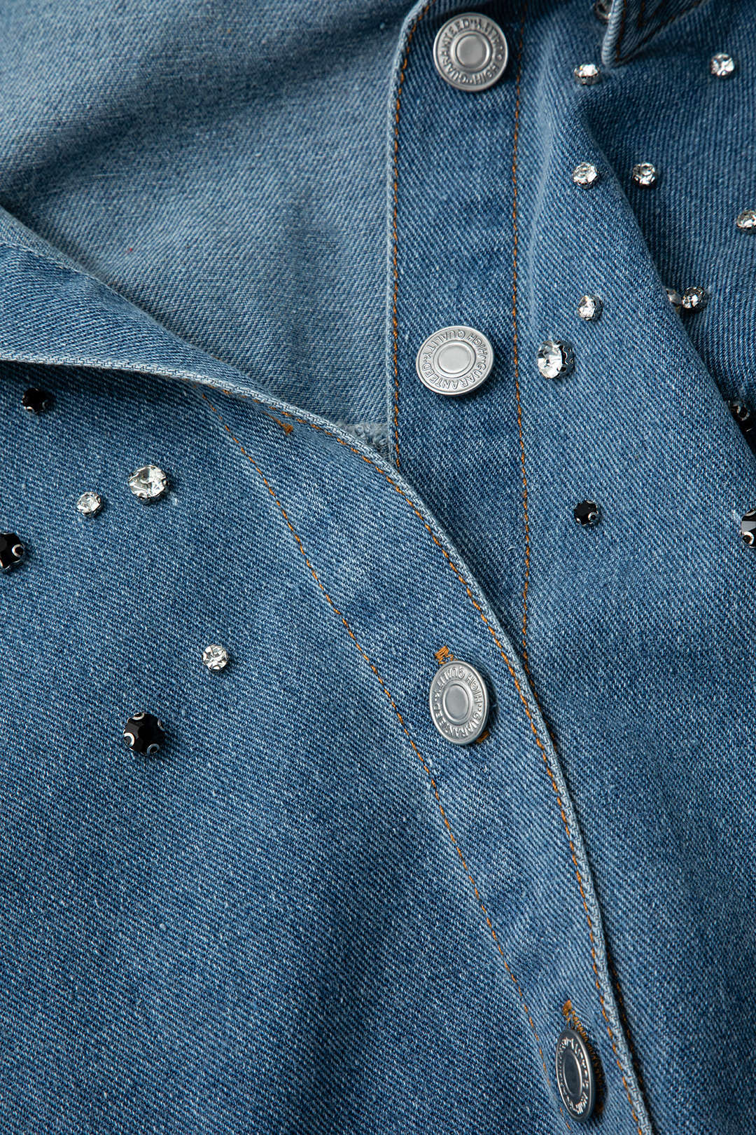 Crafted from high-quality denim, this button-up shirt features stunning rhinestone embellishments that add a touch of sparkle to your look. Pair it with baggy jeans or flare jeans for a laid-back vibe, or dress it up with a mini dress for a chic evening out. Whether you’re heading to a summer festival or a casual brunch, this versatile piece will elevate your outfit and keep you on-trend.