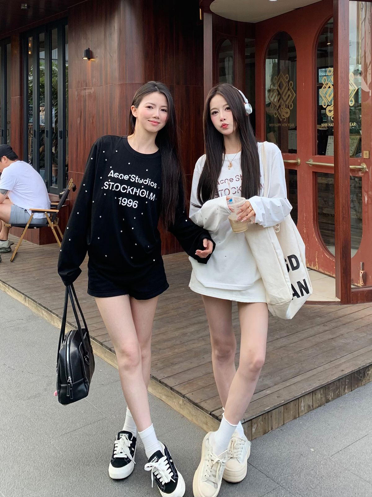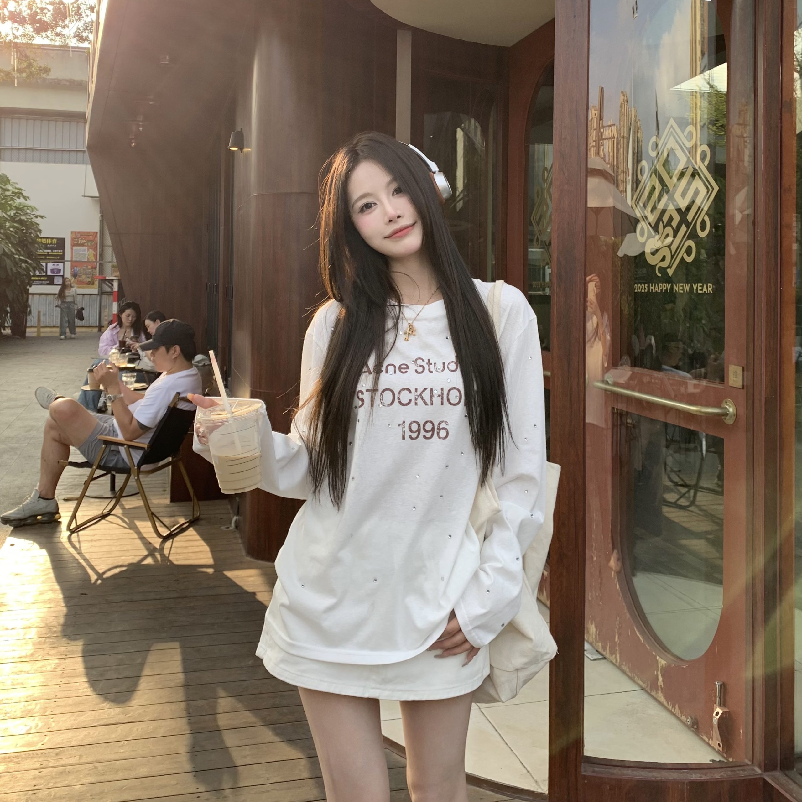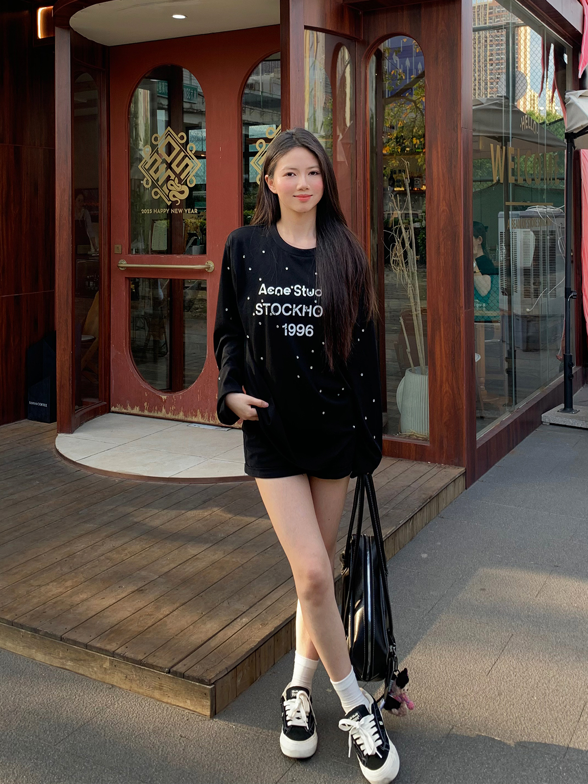 Elevate your wardrobe with our Rhinestone Letter Long Sleeve T-Shirt for Women, designed for a trendy loose fit that perfectly balances comfort and style. This high street fashion essential features eye-catching rhinestone detailing, making it a standout piece for any casual outing while providing sun protection with its long sleeves. Ideal for layering or wearing solo, this top is versatile enough for any occasion—add it to your cart today and make a sparkling statement!