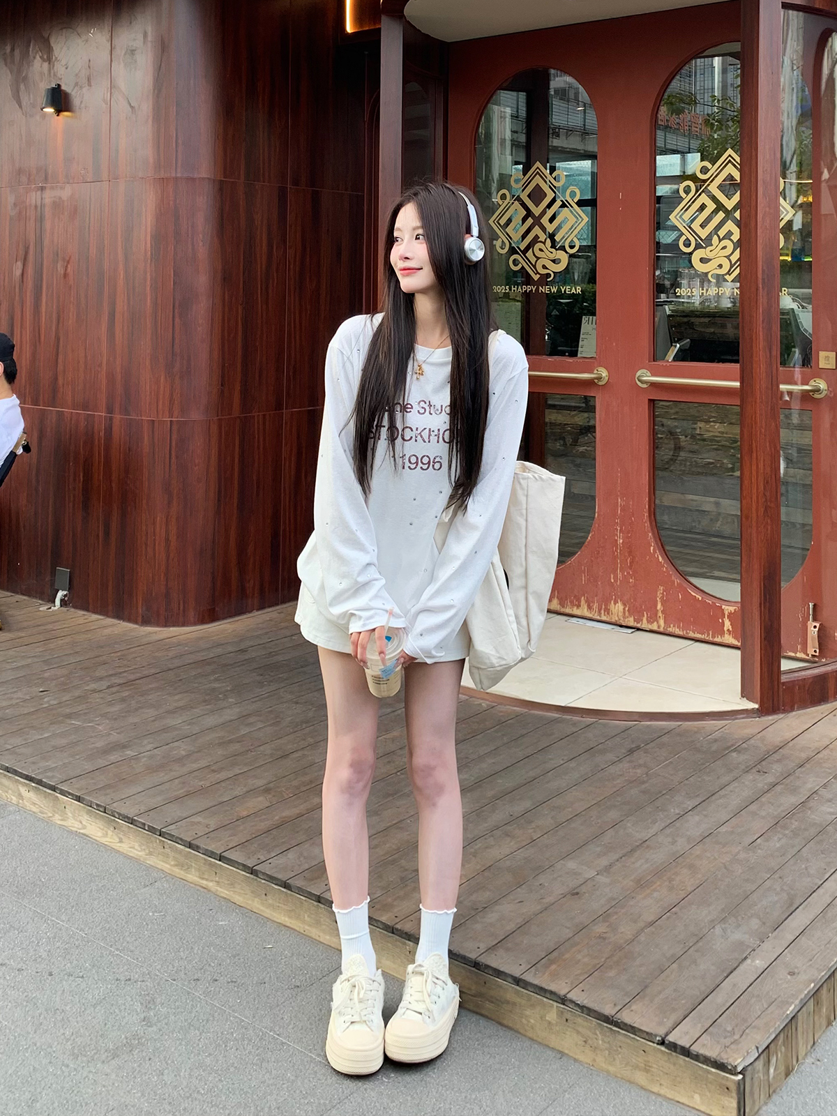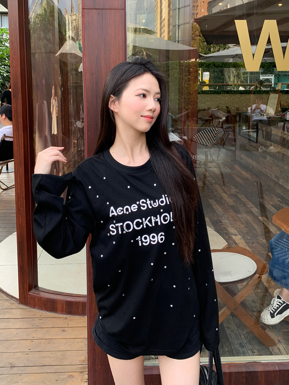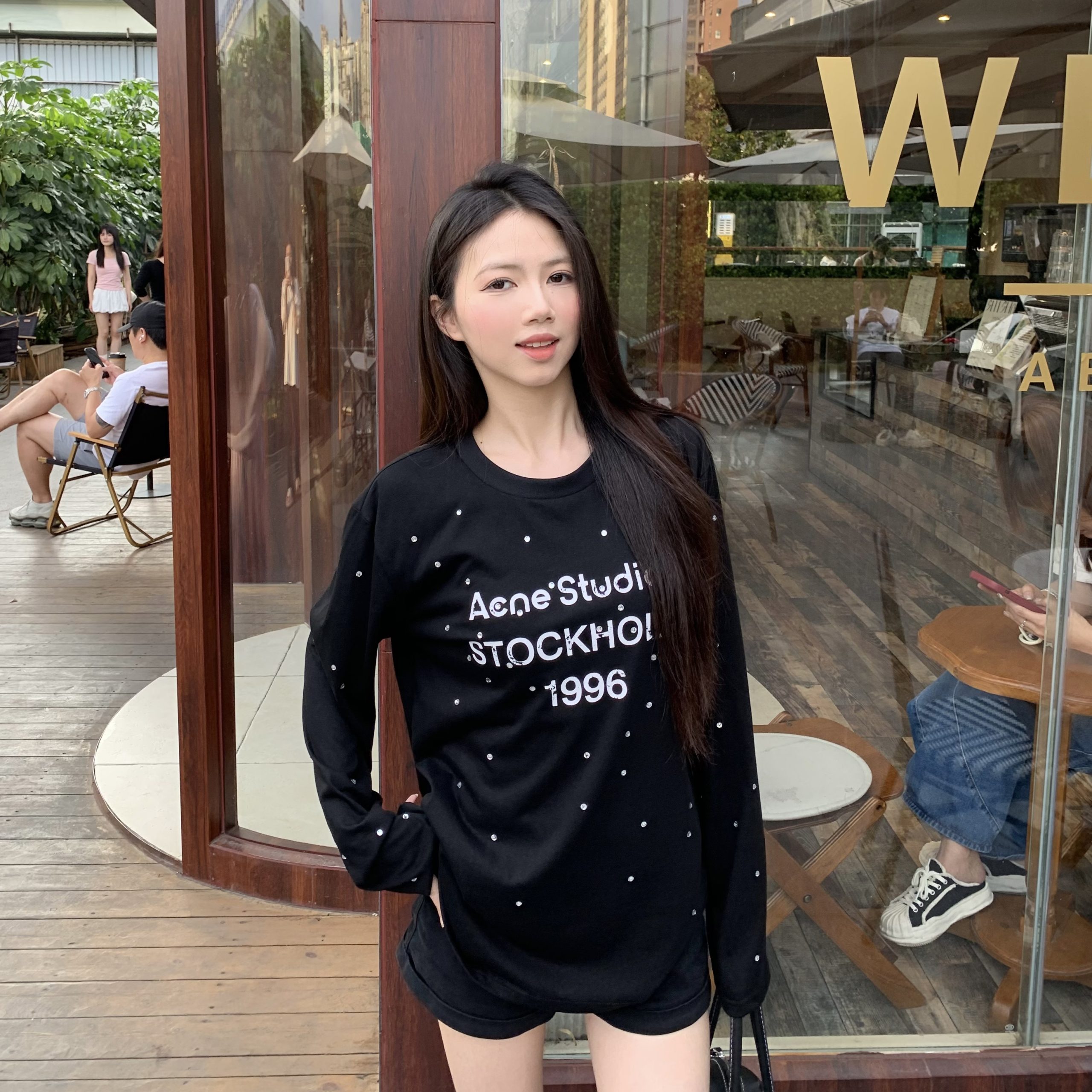 Elevate your wardrobe with our Rhinestone Letter Long Sleeve T-Shirt for Women, designed for a trendy loose fit that perfectly balances comfort and style. This high street fashion essential features eye-catching rhinestone detailing, making it a standout piece for any casual outing while providing sun protection with its long sleeves. Ideal for layering or wearing solo, this top is versatile enough for any occasion—add it to your cart today and make a sparkling statement!