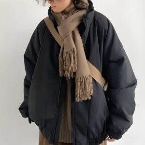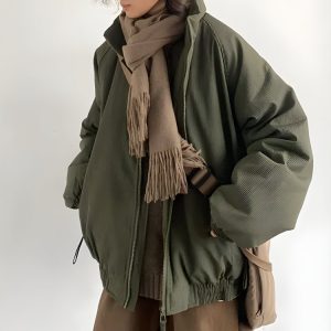 Stay cozy and stylish with this Ribbed High Neck Jacket. Its unique ribbed texture and high-neck design make it perfect for layering during colder days. A modern fit adds a trendy touch to your wardrobe.