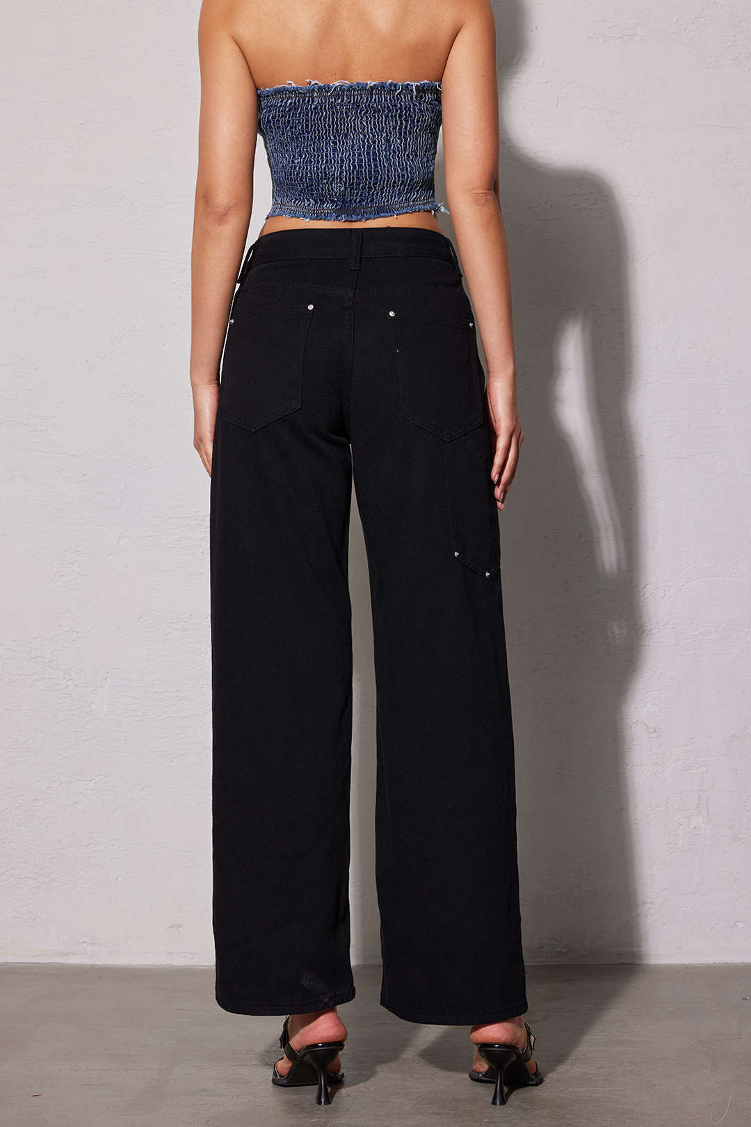Shop now and redefine your style with our Rivet Detail Y2K Straight Leg Jeans!