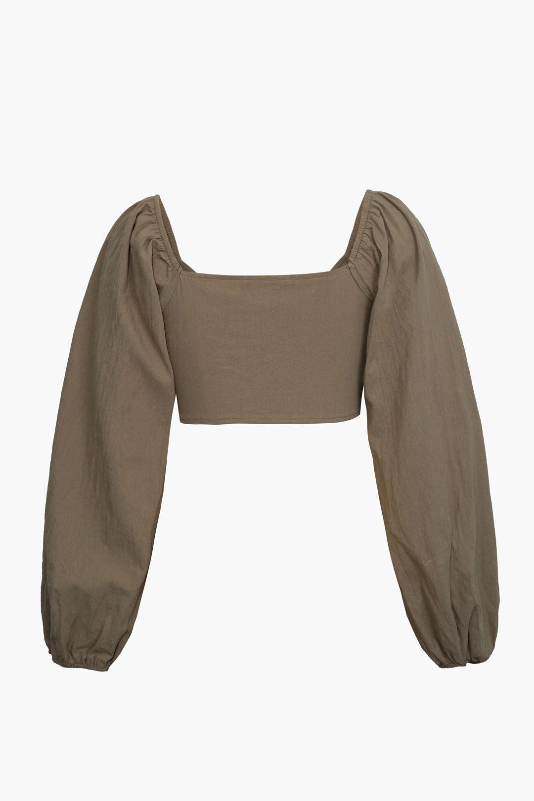 Ruched Butie Front Long Sleeve Crop Top: Y2k Outfit Ideas for Cute Looks