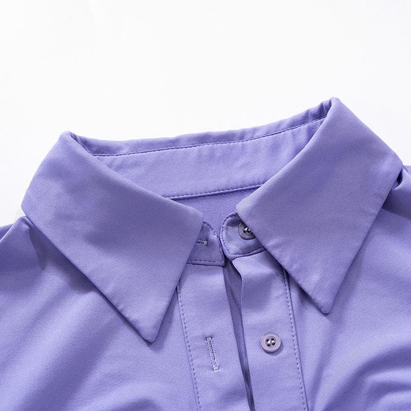 Step into the vibrant world of Y2K fashion with our stunning Y2K Fashion Turnover Collar Ruched Button Long Sleeve Mini Skirt Set. This outfit perfectly encapsulates the essence of 90s outfits while adding a modern twist that is ideal for summer vibes. The playful ruched design and trendy turnover collar make it a must-have for anyone looking to embrace the Y2K summer outfits trend.