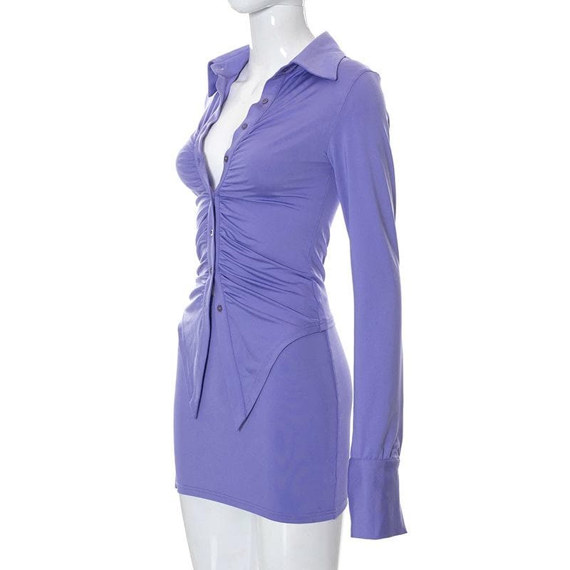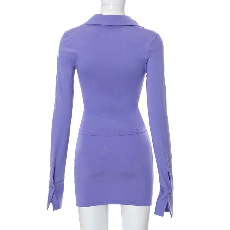 Ruched Button Up Long Sleeve Mini Skirt SetSolid Y2K High-quality product featuring prom dresses, spring outfits, business casual outfits and more. Modern design that fits the latest trends. Premium materials ensure durability and comfort. Order now for special offers! Product designed with attention to every detail. Suitable for all occasions and personal styles.
