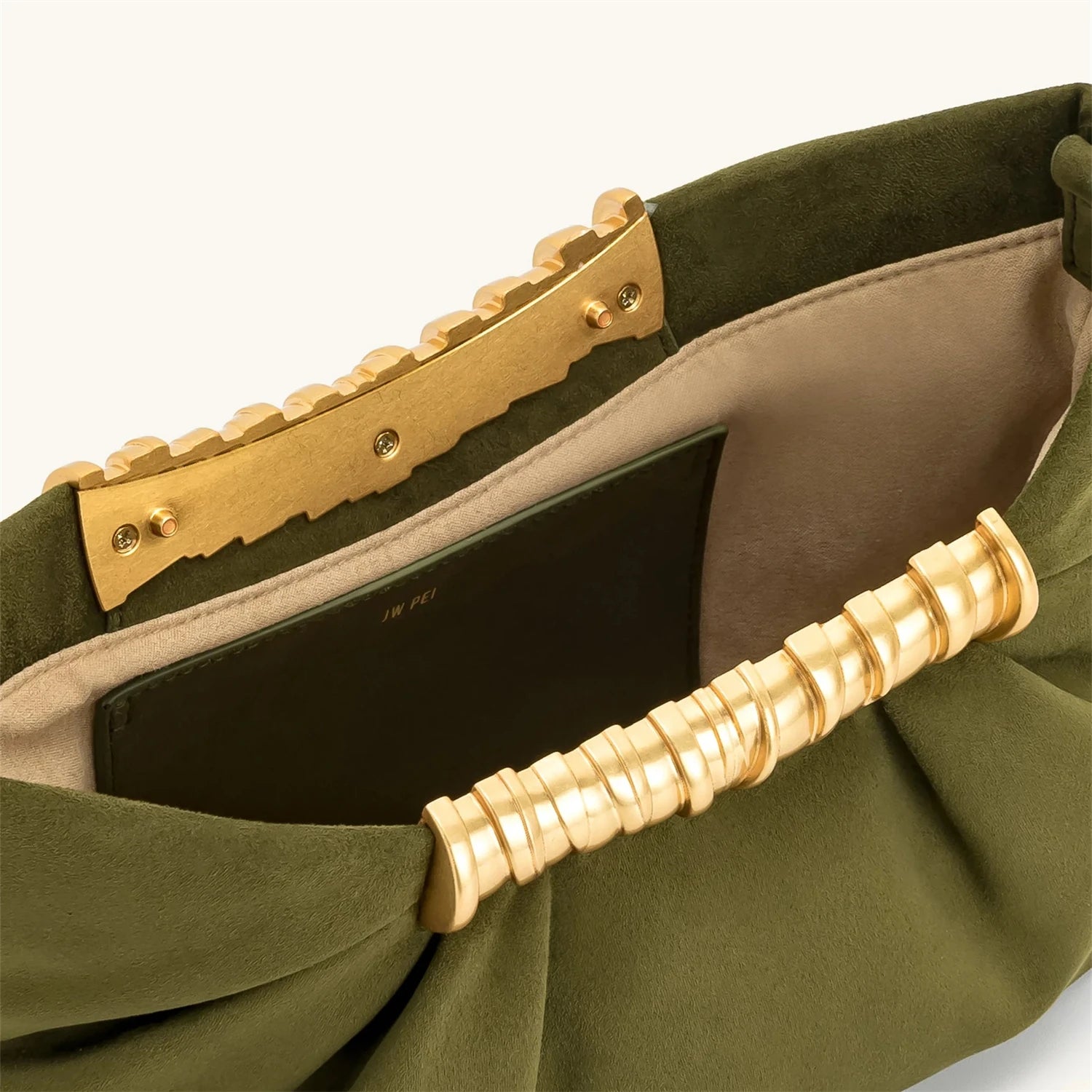Ruched Clutch Bag delivers a compact statement accessory with a sculpted, gathered design. Crafted with a smooth exterior and structured base, this clutch keeps essentials secure while maintaining a clean profile. The detachable strap allows handheld or shoulder carry, making the ruched clutch bag suitable for evening outfits, events, and refined daily styling.