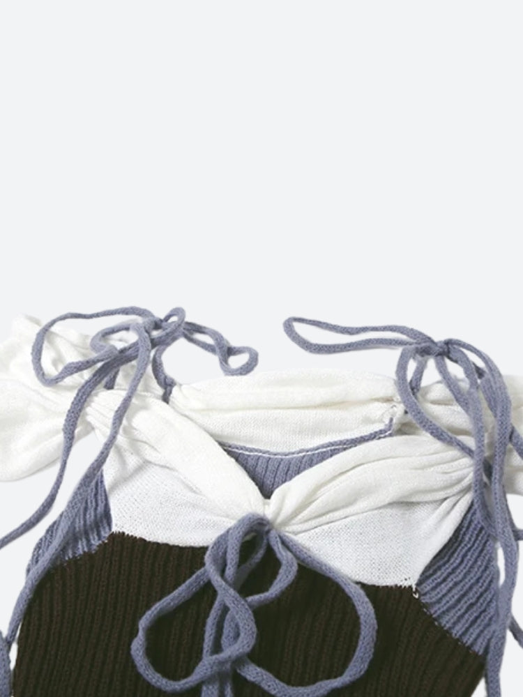 Cute, chaotic, and completely irresistible—this Ruched Knitted Mini Dress is a handmade-inspired masterpiece for the bold. With contrasting ribbed textures, a corset-like silhouette, and extra-long tie straps, it blurs the lines between cottagecore charm and sultry clubwear. Designed for those who want to turn soft into statement.