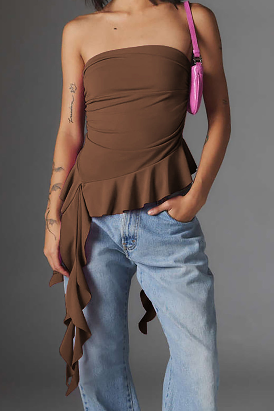 Ruffle Hem Strapless Top Y2k Cute Crop Top Coquette, Grunge – Outfit Ideas