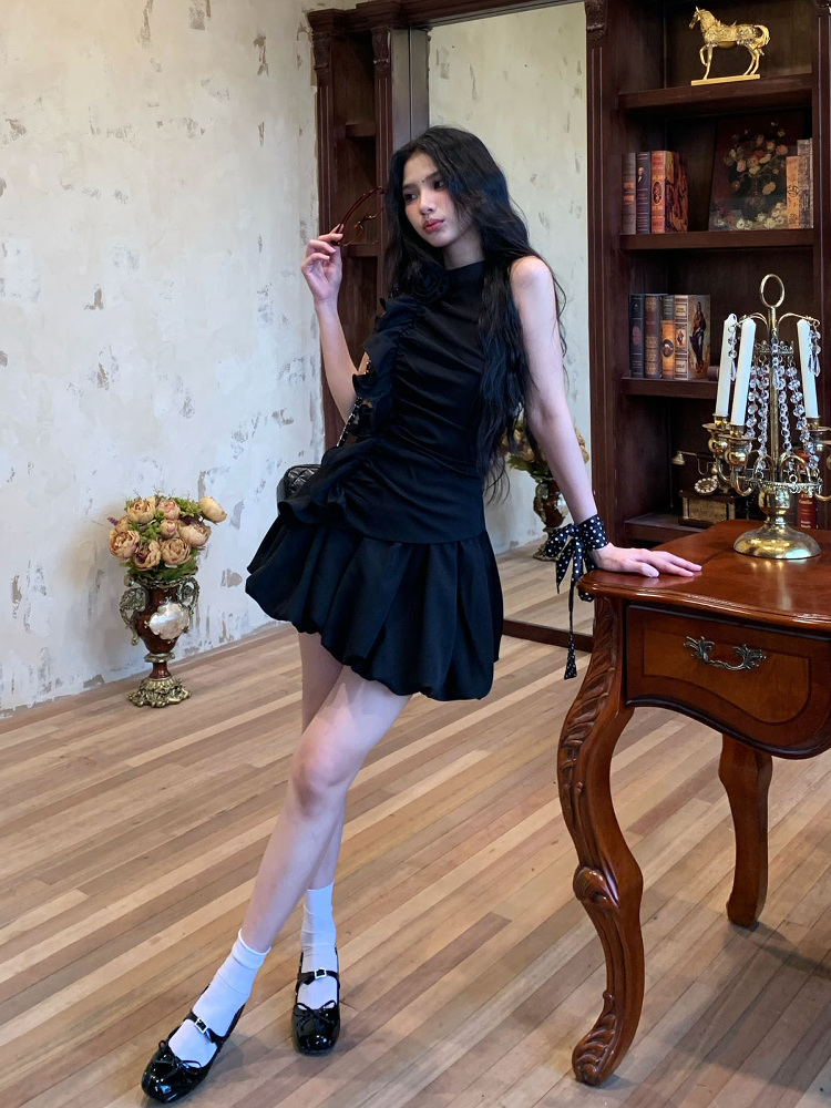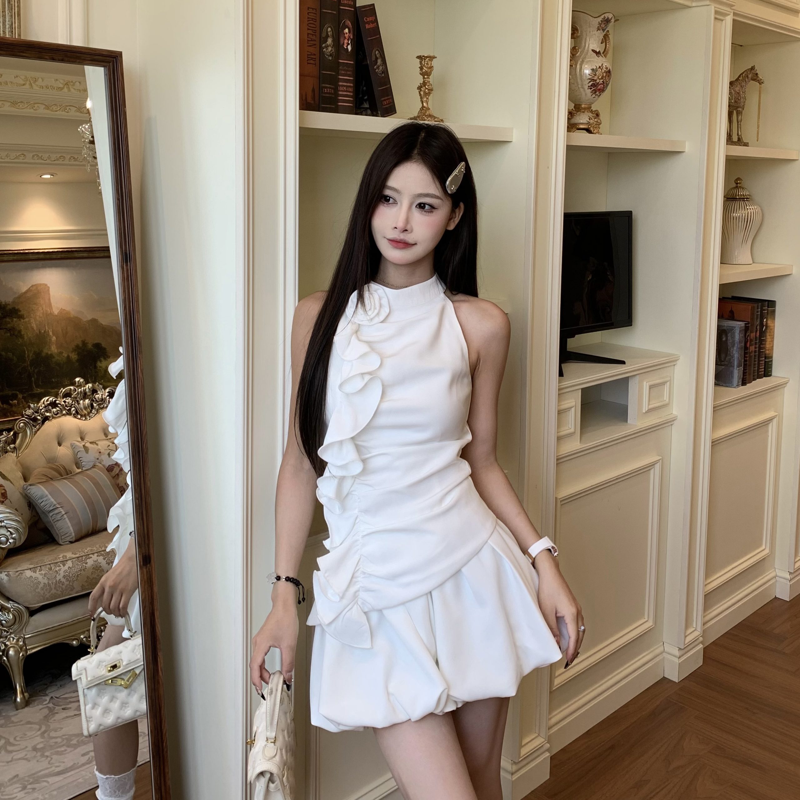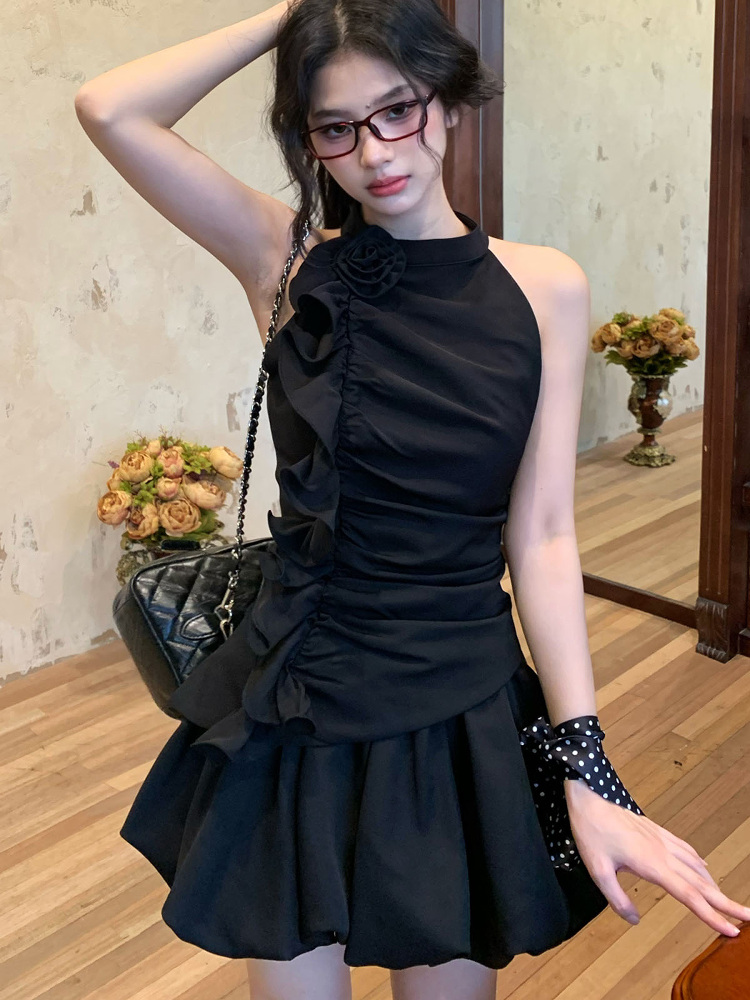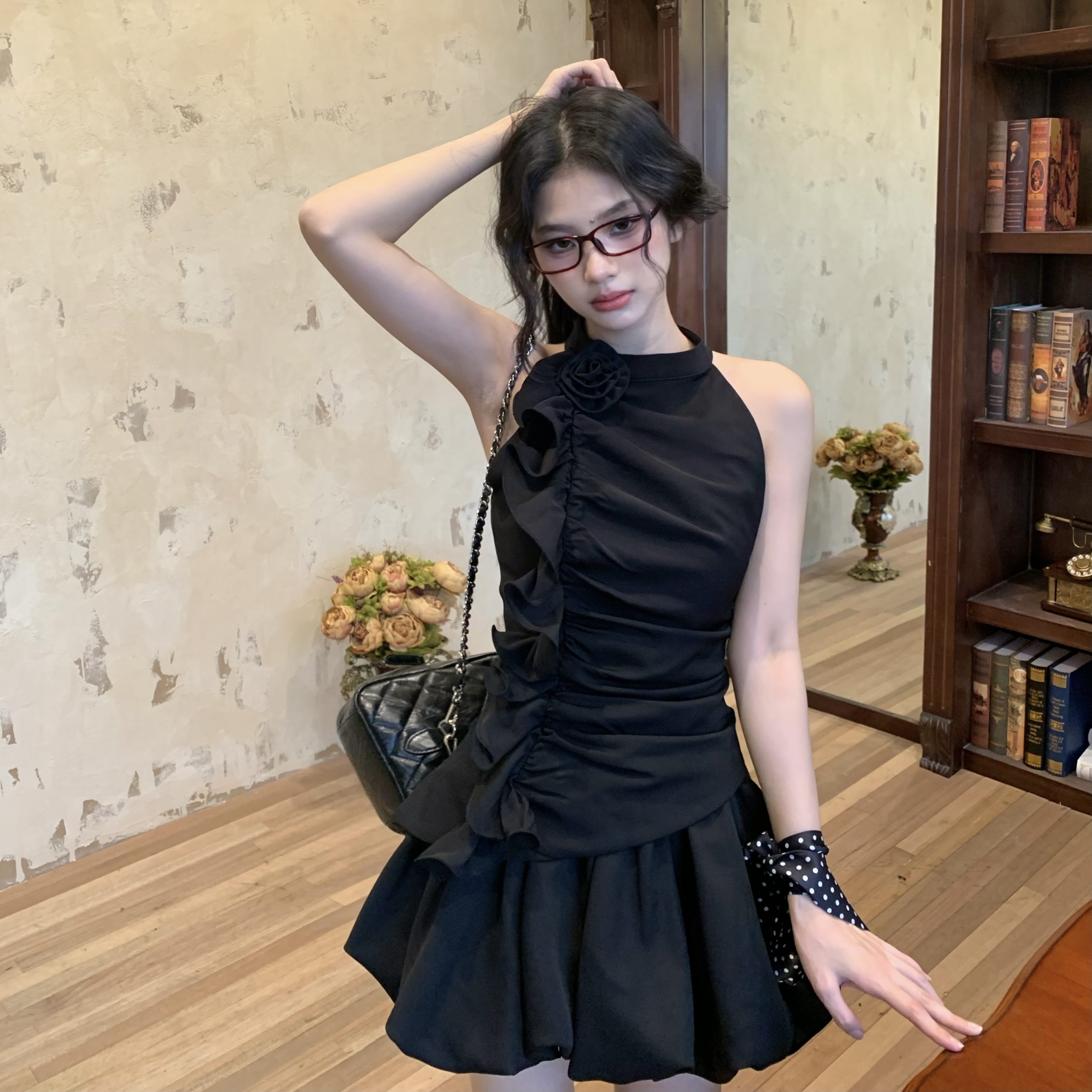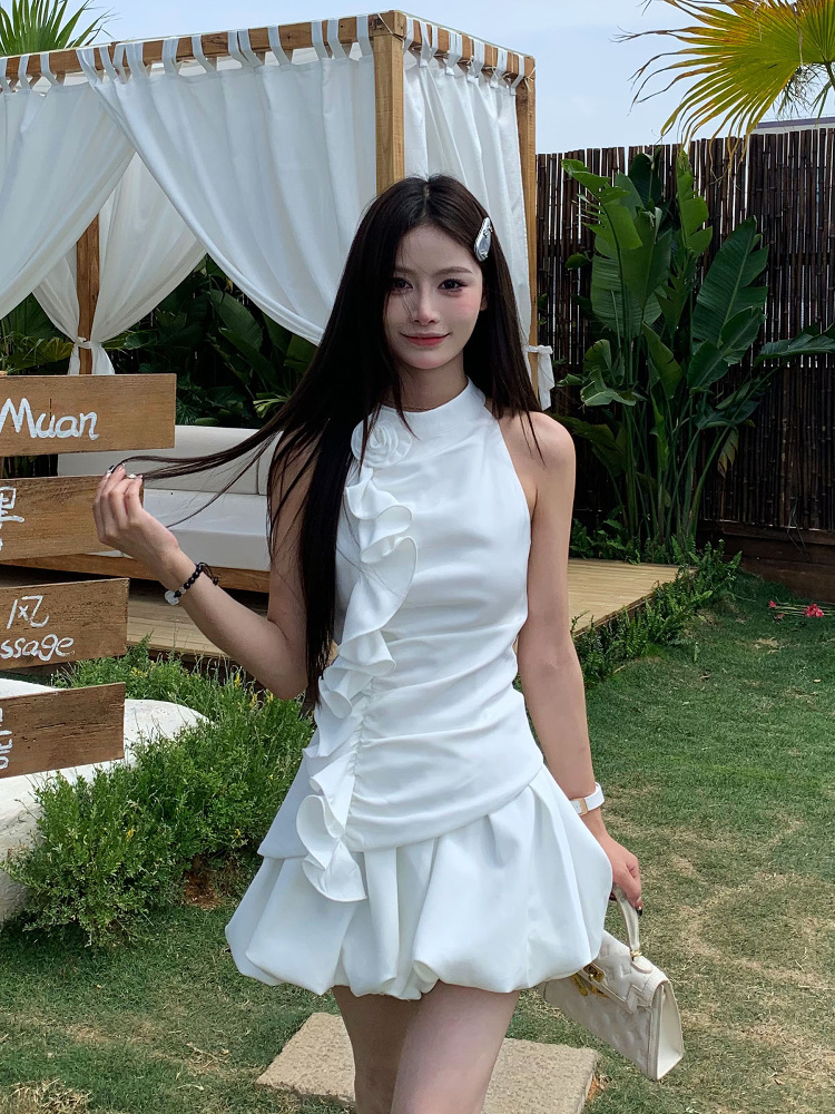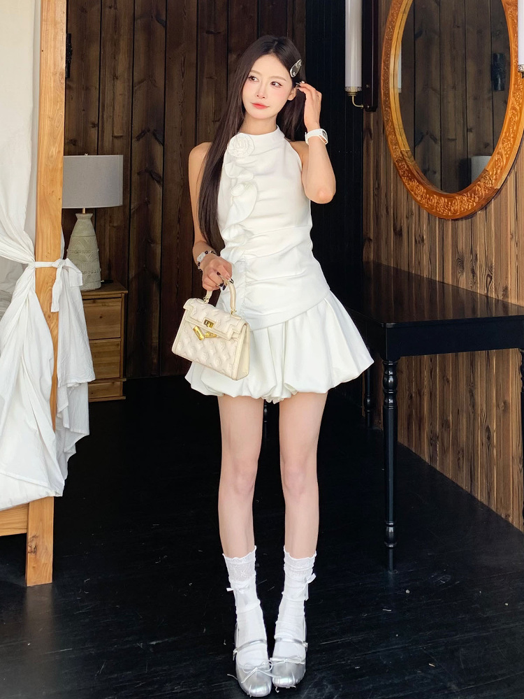 Ruffled Neck Hanging Neck V Top, Flower Bud Skirt Set Women – Outfit Ideas