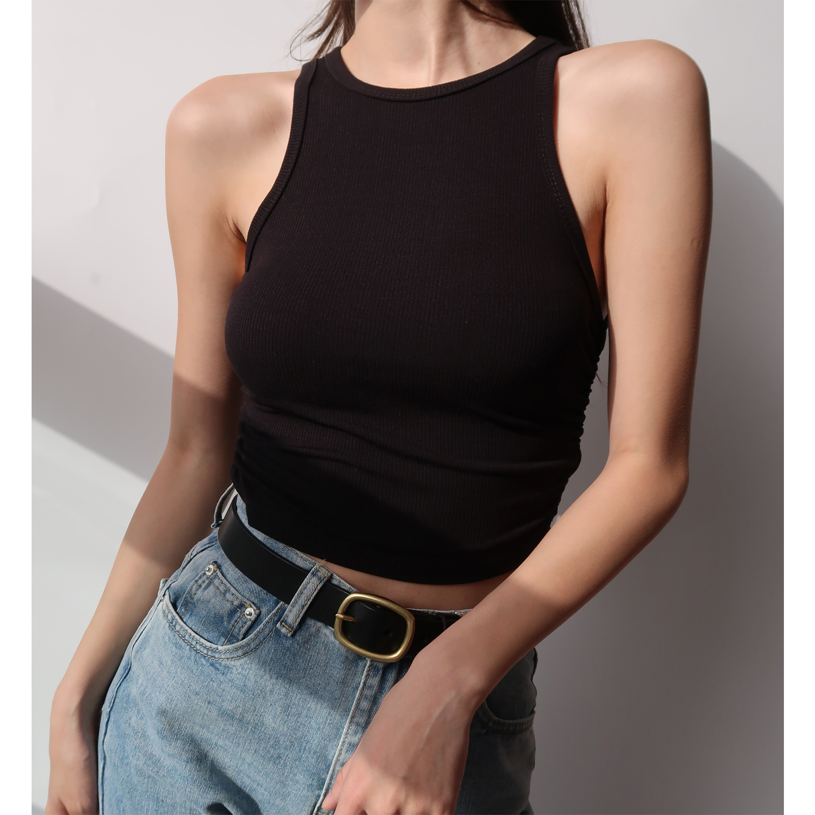 Stylish Outfit Ideas Featuring a Neck Ribbed Sleeveless V Elastic Waist Top