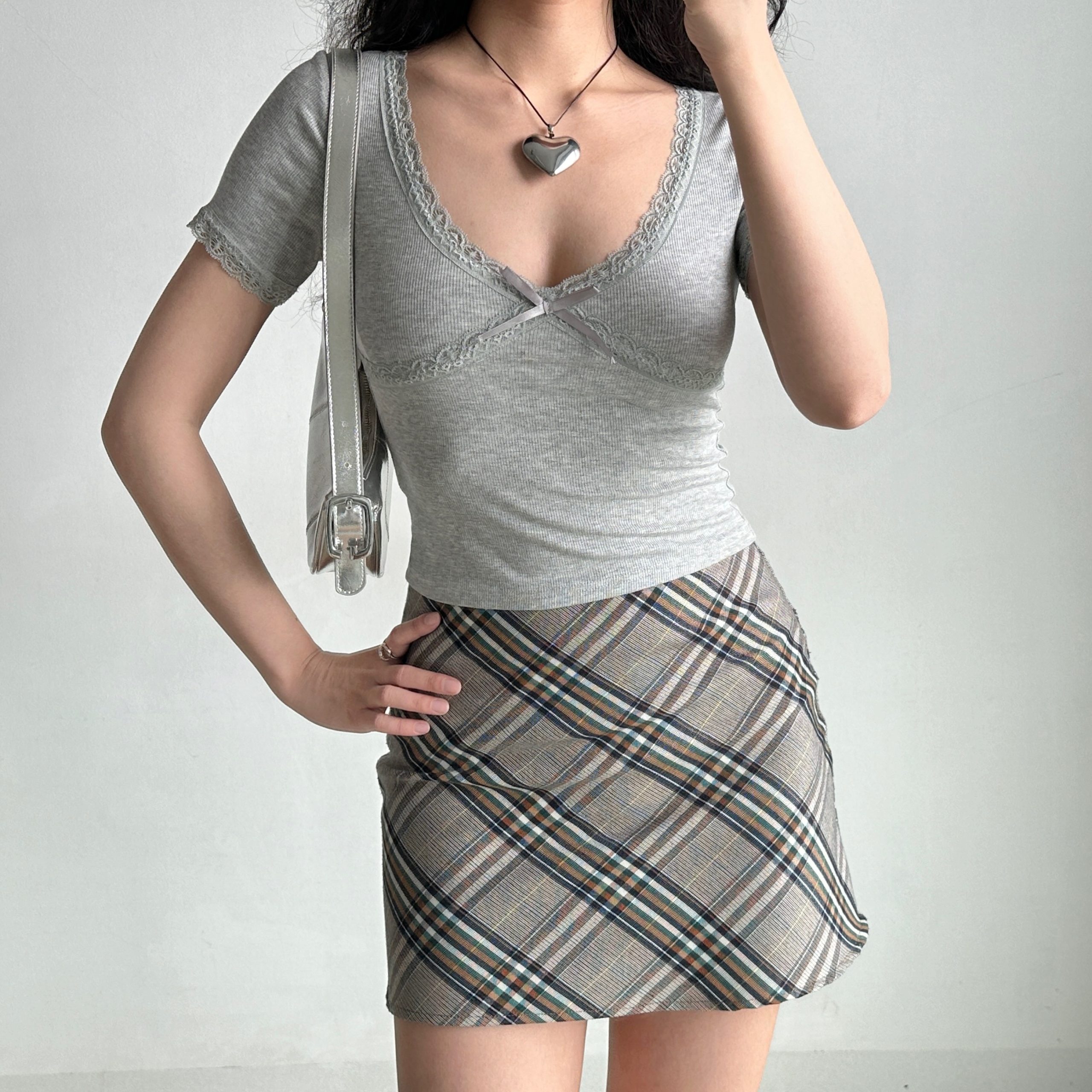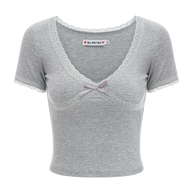 Lace Trim Low Cut V- Neck Ribbed Short Sleeve T- shirt Women Slim Fit Top High-quality product featuring prom dresses, spring outfits, business casual outfits and more. Modern design that fits the latest trends. Premium materials ensure durability and comfort. Order now for special offers! Product designed with attention to every detail. Suitable for all occasions and personal styles.