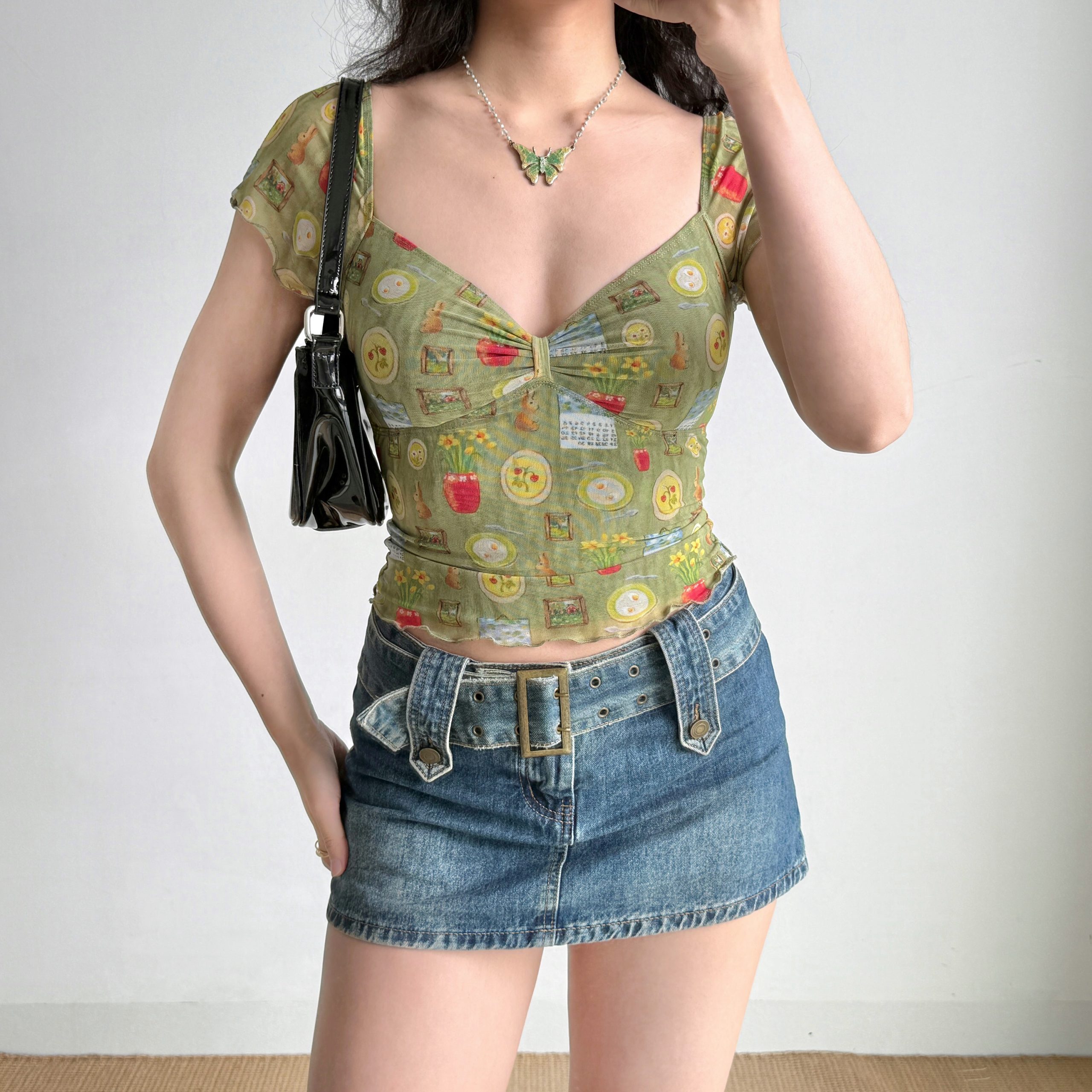 V- Neck Printed Mesh Short Sleeve T- shirt Women Vintage Summer Top High-quality product featuring prom dresses, spring outfits, business casual outfits and more. Modern design that fits the latest trends. Premium materials ensure durability and comfort. Order now for special offers! Product designed with attention to every detail. Suitable for all occasions and personal styles.