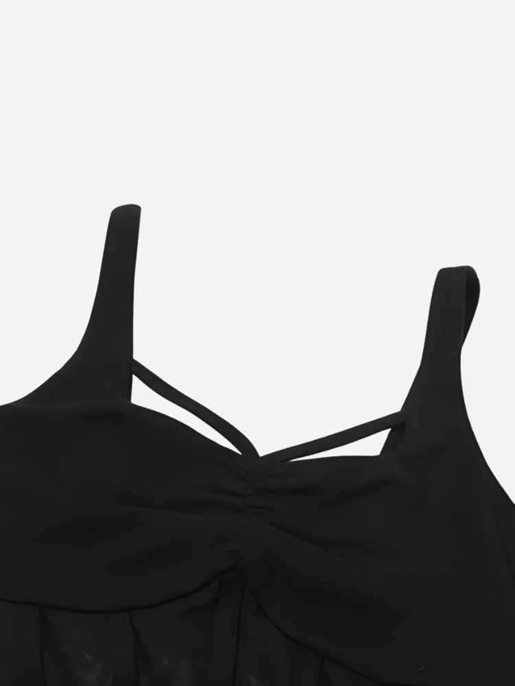 - Sheer mesh bodice