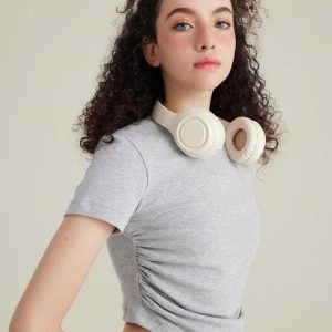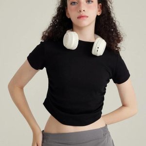 Sophistication meets casual chic in this side ruched women’s crop tee. Cotton and polyester blend ensures comfort, while the crew neckline adds a modern edge. Pair with high-waisted pants for a refined yet relaxed look.