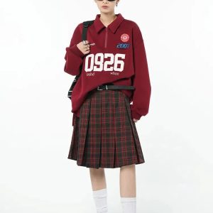 Rediscover the spirited college days with this vibrant red skater skirt. Its plaid and pleated design, crafted from a comfortable cotton-polyester blend, brings a youthful, nostalgic charm. Perfect for adding a playful and stylish edge to any casual outfit.