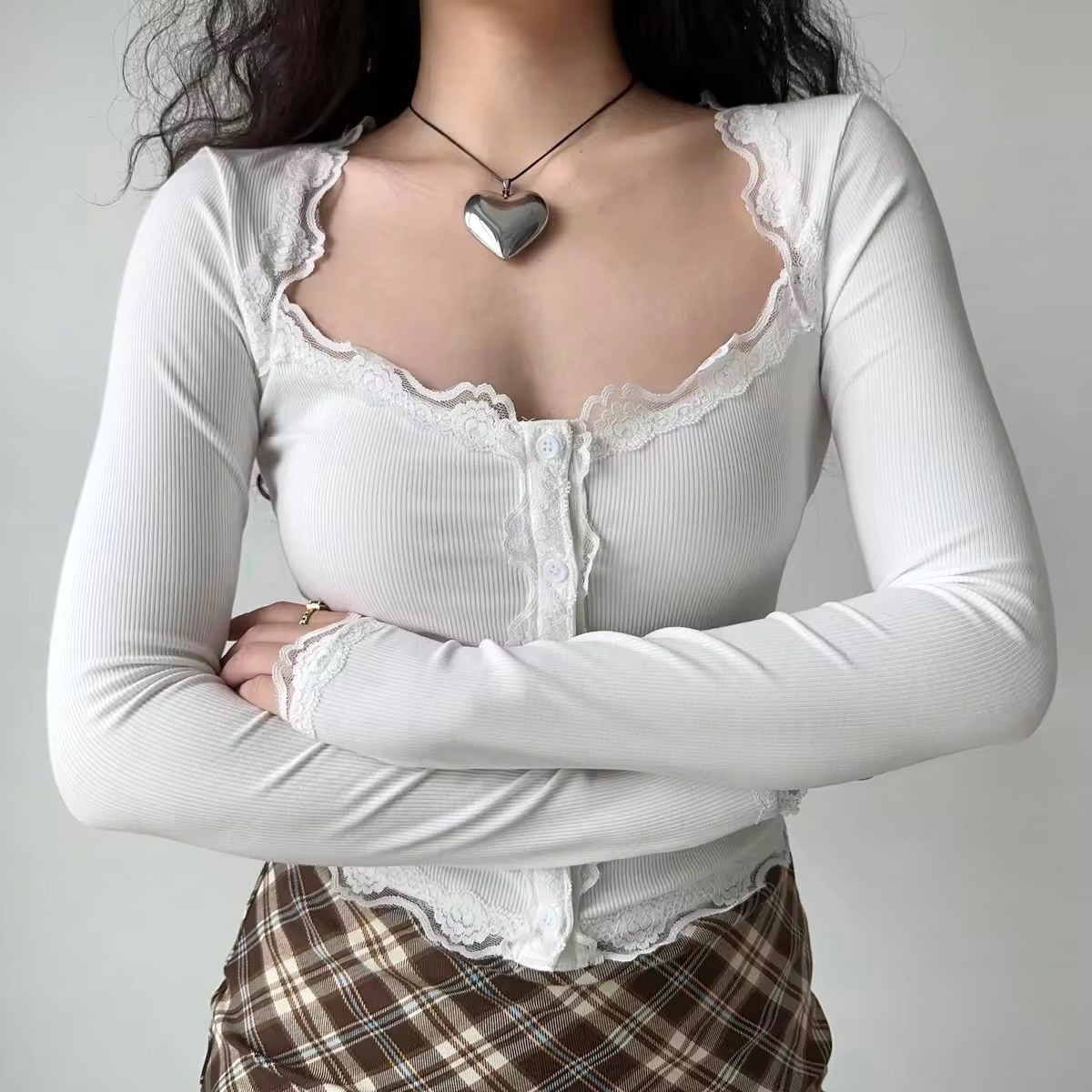 Slim Fit Lace Trim Long Sleeve Knitted Cardigan Women, Casual Top Y2K pired High-quality product featuring prom dresses, spring outfits, business casual outfits and more. Modern design that fits the latest trends. Premium materials ensure durability and comfort. Order now for special offers! Product designed with attention to every detail. Suitable for all occasions and personal styles.