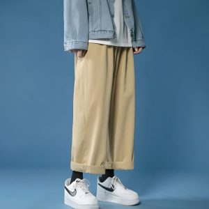 These straight-leg pants epitomize the soft boy aesthetic, offering comfort and style in equal measure. Made from cotton with a mid-rise and elasticated waist, they’re ideal for men seeking a blend of casual, cozy, and school-friendly attire.