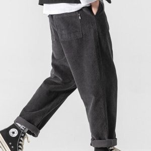 Add a cozy touch to your Soft Boy aesthetic with these Corduroy Jogger Pants. Crafted from premium cotton, the pants offer unbeatable comfort and style. The elasticated waist with a tie and ankle cuffs ensure a snug fit, while the cuffed hem adds a stylish twist. Featuring twin front pockets for added convenience, these joggers will quickly become your go-to choice for laid-back looks.