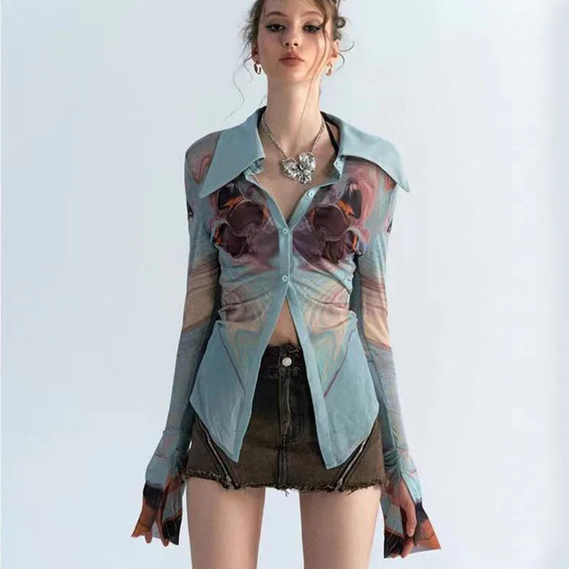 Step into an ethereal color palette with this unisex, long-sleeved shirt. Spangled with smiley faces on both the front and back, it exudes whimsy and youthful exuberance. Soft pastels add an airy feel, while the button-up design ensures effortless wearability. A must-have for those seeking to inject their look with quirky elegance.