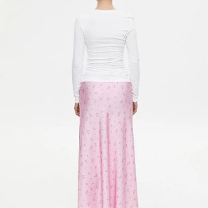 The Soft Girl Floral Satin Midi Skirt is the dreamy staple your wardrobe’s been waiting for. With its smooth satin finish and dainty pink floral print, this skirt brings effortless elegance and a touch of vintage charm.