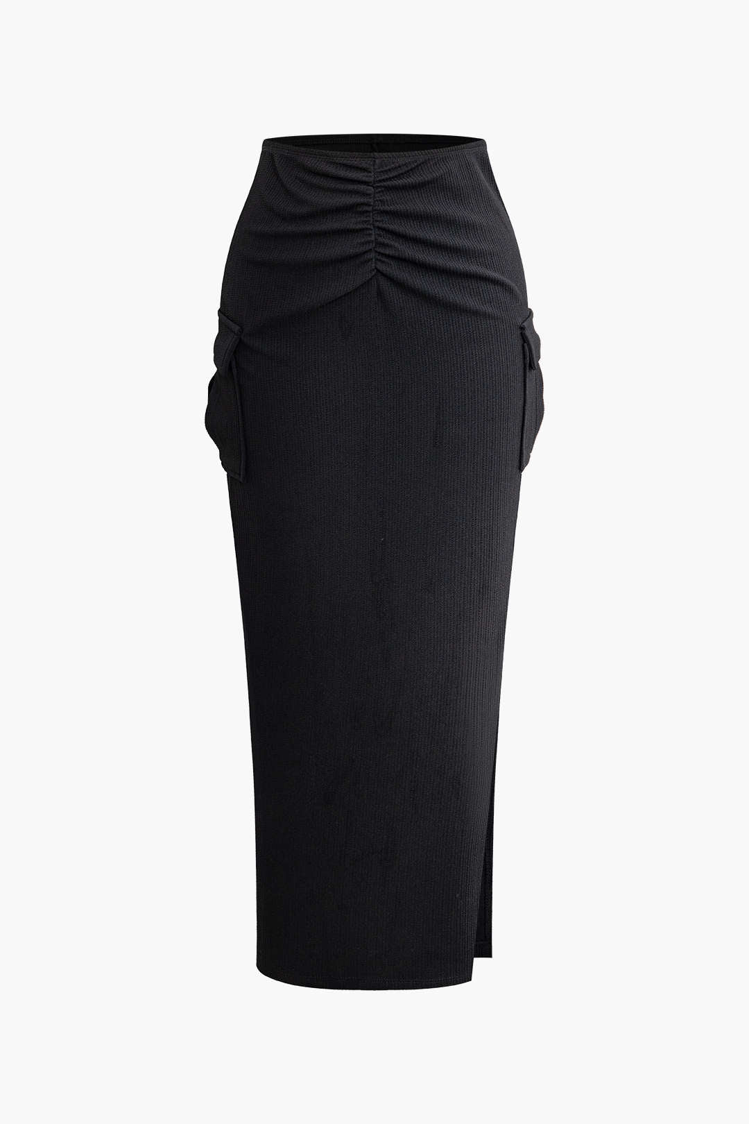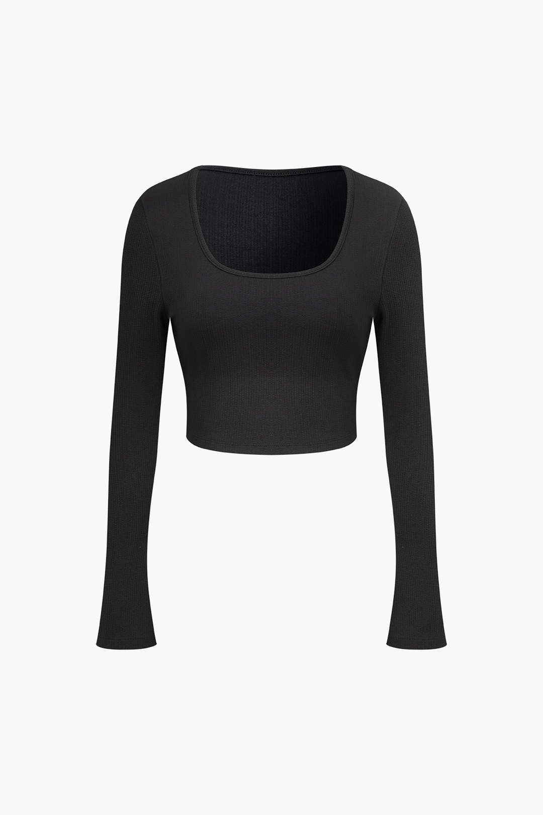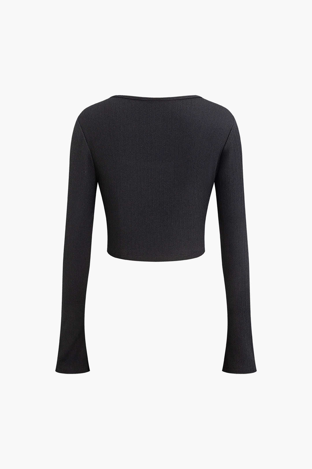 Solid Square Neck Long Sleeve Crop Top Ruched Split Flap Poc – Outfit Ideas
