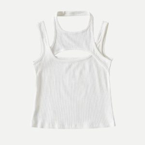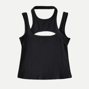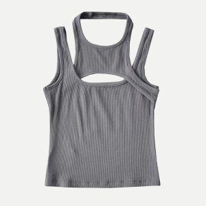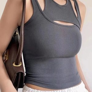 This sporty asymmetric tank top is a modern twist on activewear. Its ribbed fabric, edgy cut-out, and comfy stretch bring a cool vibe for workouts or casual layering.