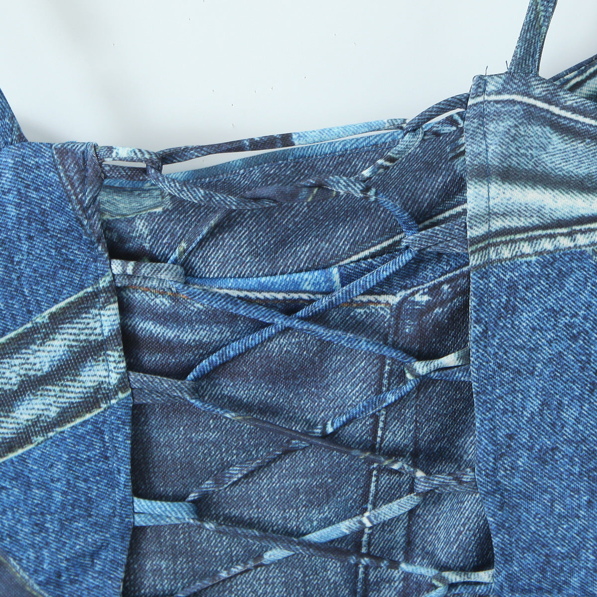 Y2K Square Neck Denim Cami Top – Trendy Summer Outfit for Retro Style Lovers