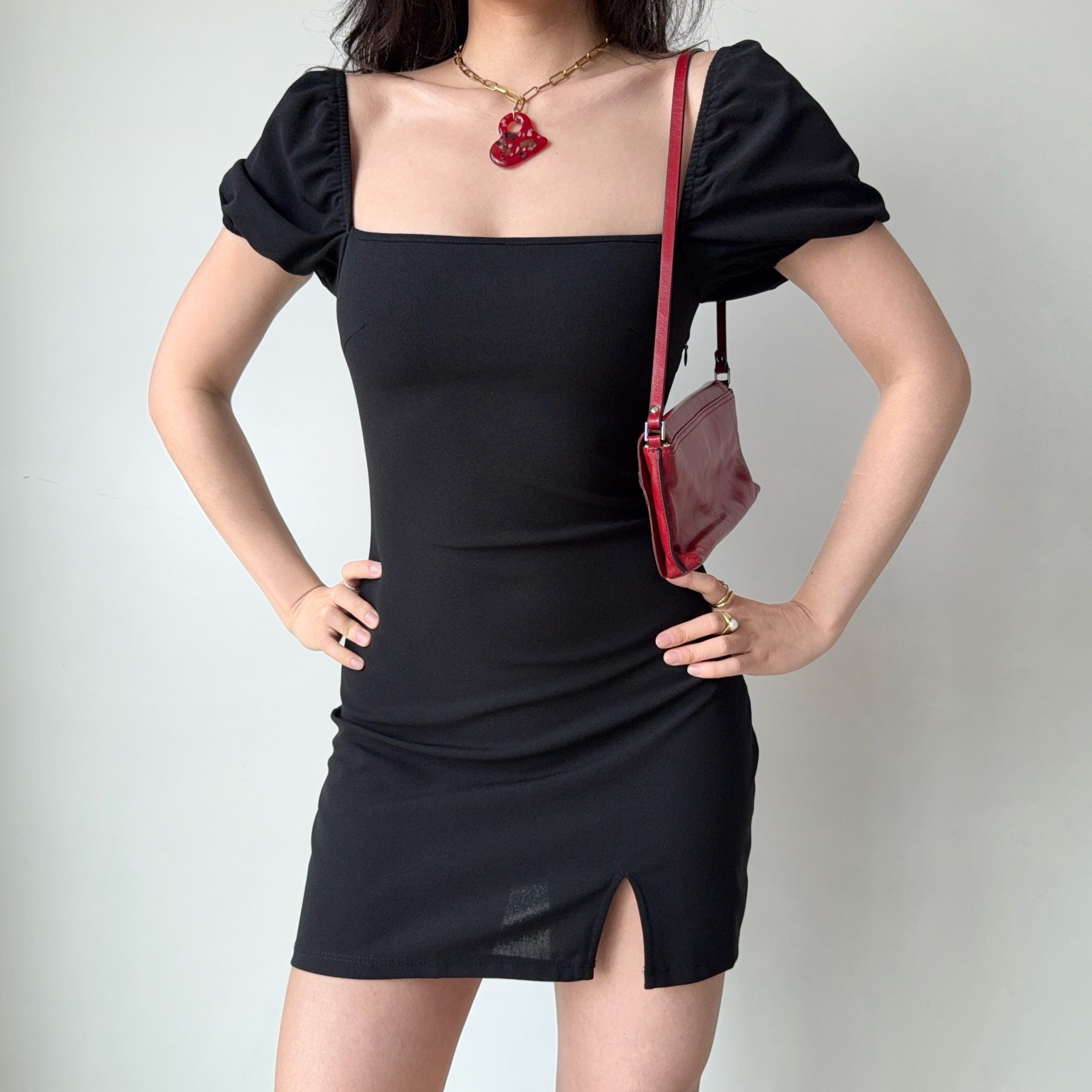 Square Neck Puff Sleeve Bodycon Dress Split Short Skirt Women High-quality product featuring prom dresses, spring outfits, business casual outfits and more. Modern design that fits the latest trends. Premium materials ensure durability and comfort. Order now for special offers! Product designed with attention to every detail. Suitable for all occasions and personal styles.