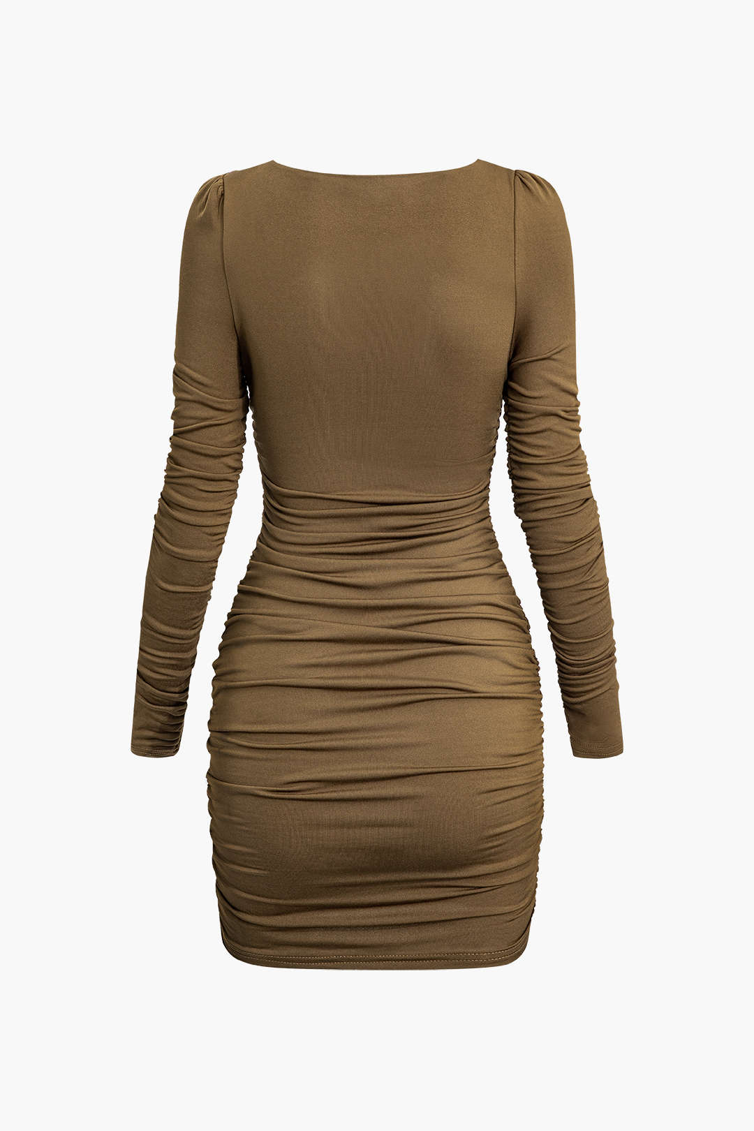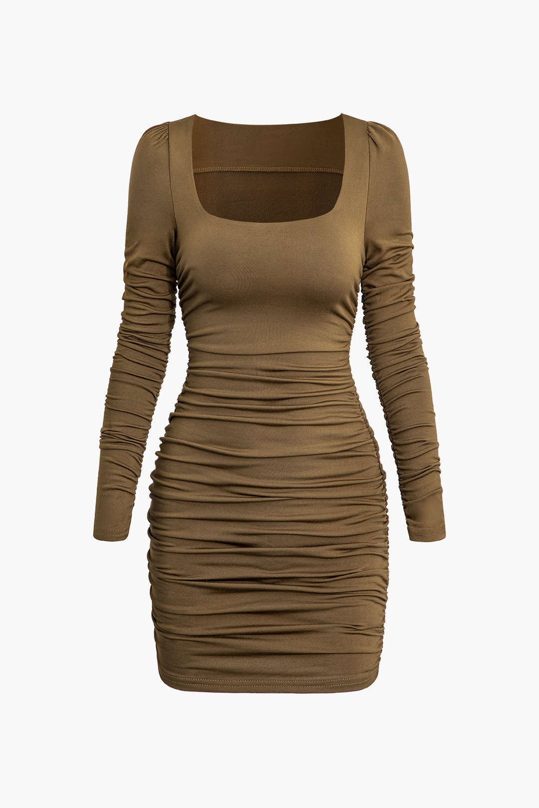 Cute and Comfy Square Neck Ruched Long Sleeve Mini Dress Outfit Ideas