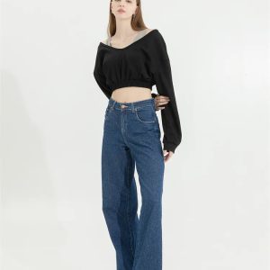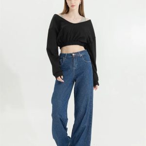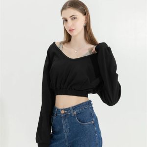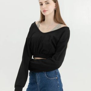 Stay comfy and stylish in this crop sweatshirt with fixed, contrast color straps detail. Its drop shoulder and elasticated hem provide a relaxed fit. A great choice for women seeking a casual yet cozy top for winter or lounging at home.