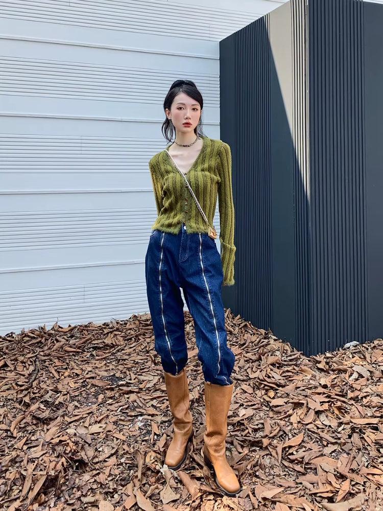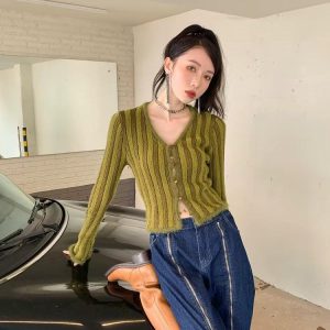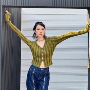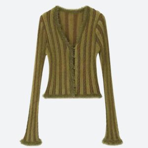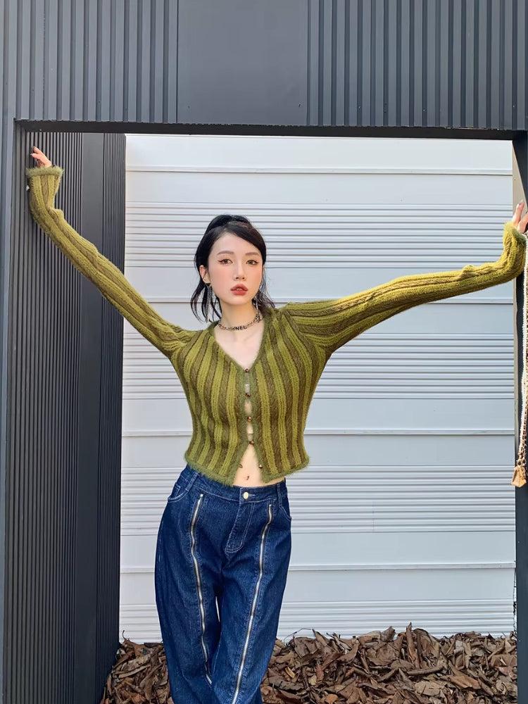 This striped fluffy cardigan adds a cozy yet stylish touch to any outfit. The soft, textured knit and cropped fit make it perfect for layering, while the button-up front adds versatility. A must-have for casual and streetwear looks.