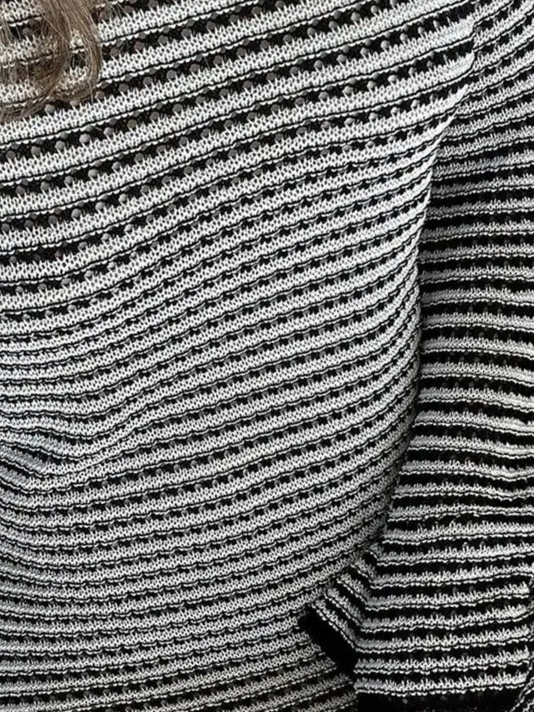 This striped mini dress is the perfect mix of casual and chic. Designed with a semi-sheer knit fabric, it offers a breathable yet stylish look. The bell sleeves add a retro-inspired touch, making it an easy choice for layering or wearing solo.