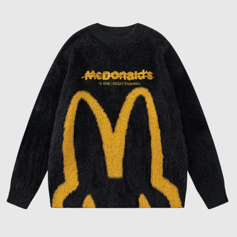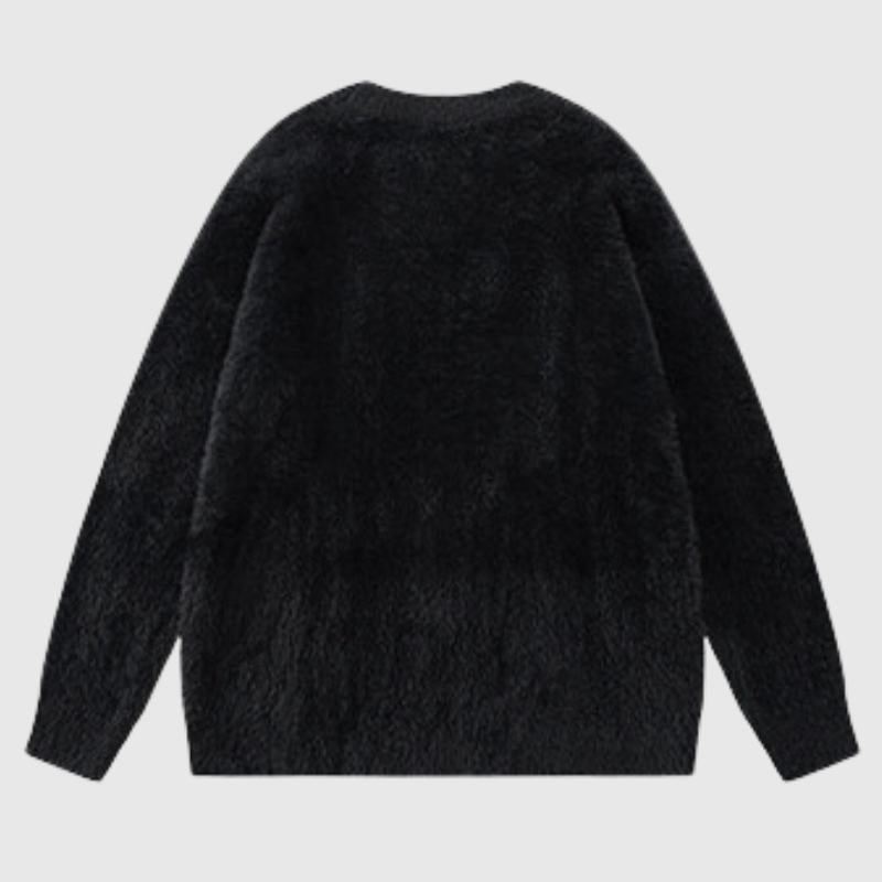 Features: Pullover, round neck, long sleeves, cartoon print design, loose fit, jacquard weaving, couple wear.