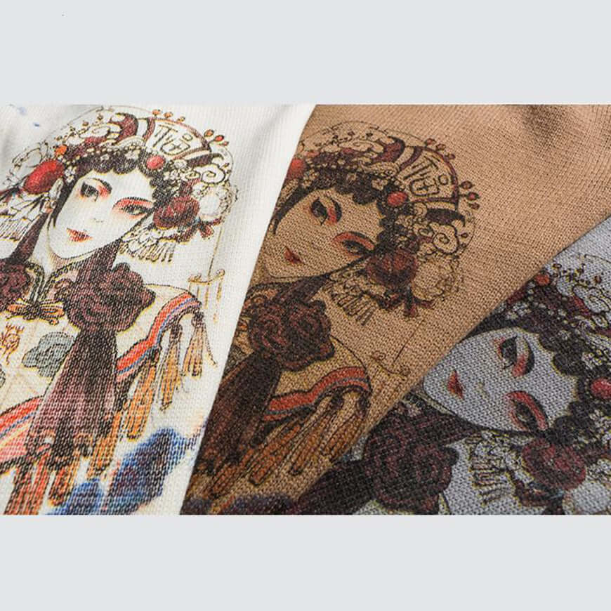 Peking opera patterns plus a slight ink painting style, Chinese traditional elements are fully reflected. Clothes are silent language.