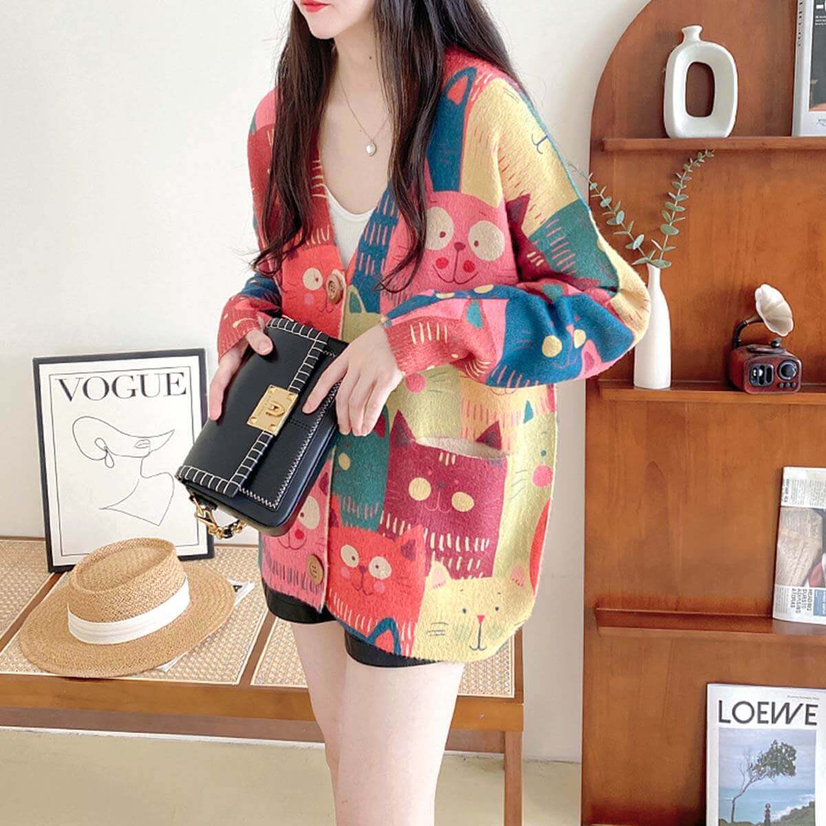 Core, New Cartoon Cat Cardigan High-quality product featuring prom dresses, spring outfits, business casual outfits and more. Modern design that fits the latest trends. Premium materials ensure durability and comfort. Order now for special offers! Product designed with attention to every detail. Suitable for all occasions and personal styles.
