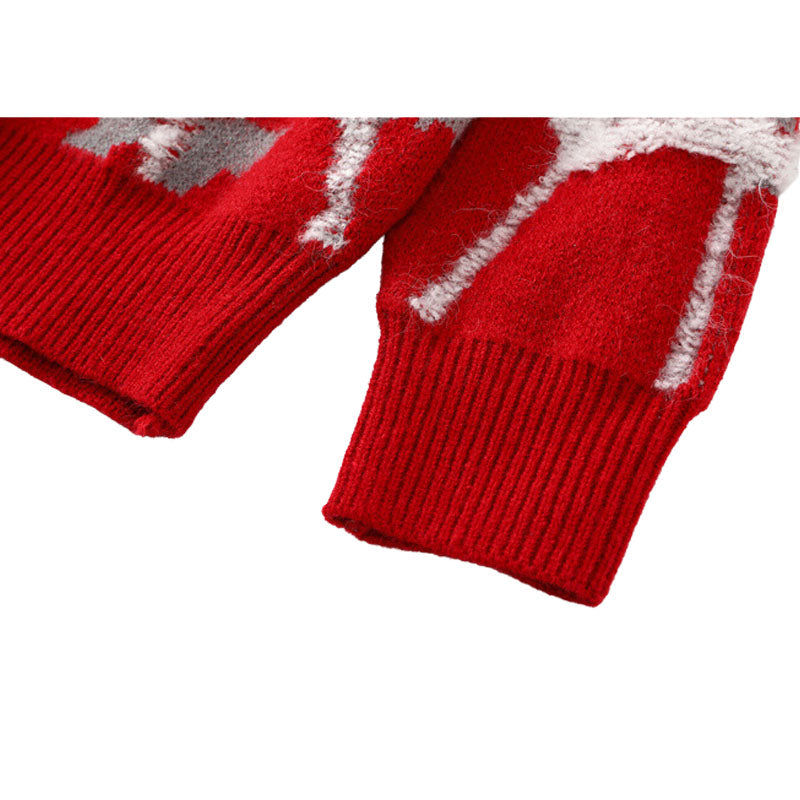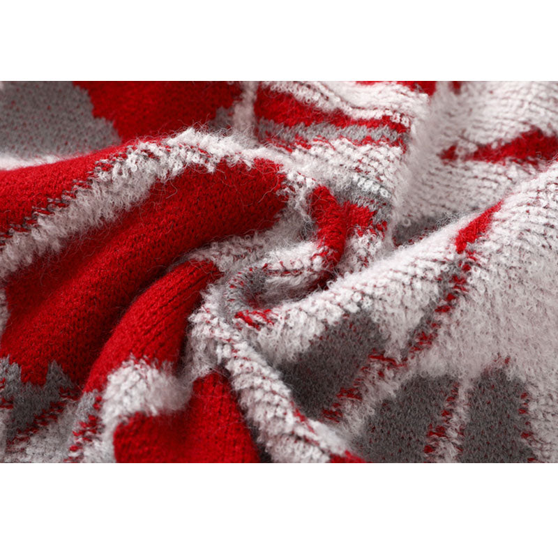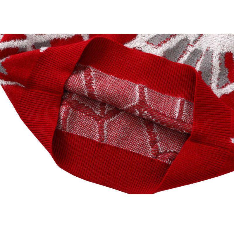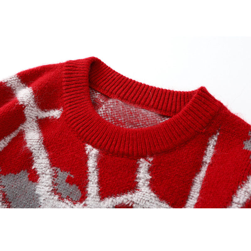 Features: Pullover, crew neck, long sleeve, color contrast, cobweb printed design, vintage, knit, relaxed fit, jacquard weave, couple outfits.