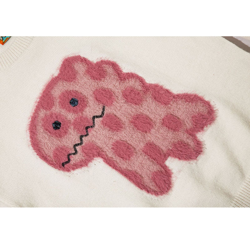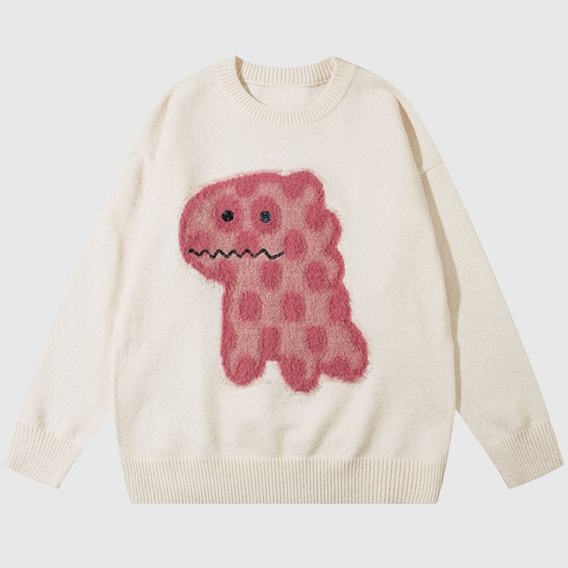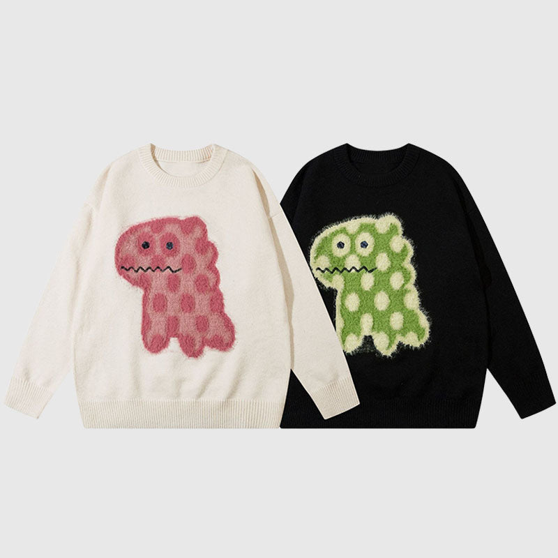 Features: Pullover, crew neck, long sleeve, cute dinosaur pattern embroidered design, relaxed fit, jacquard weave, couple outfits.