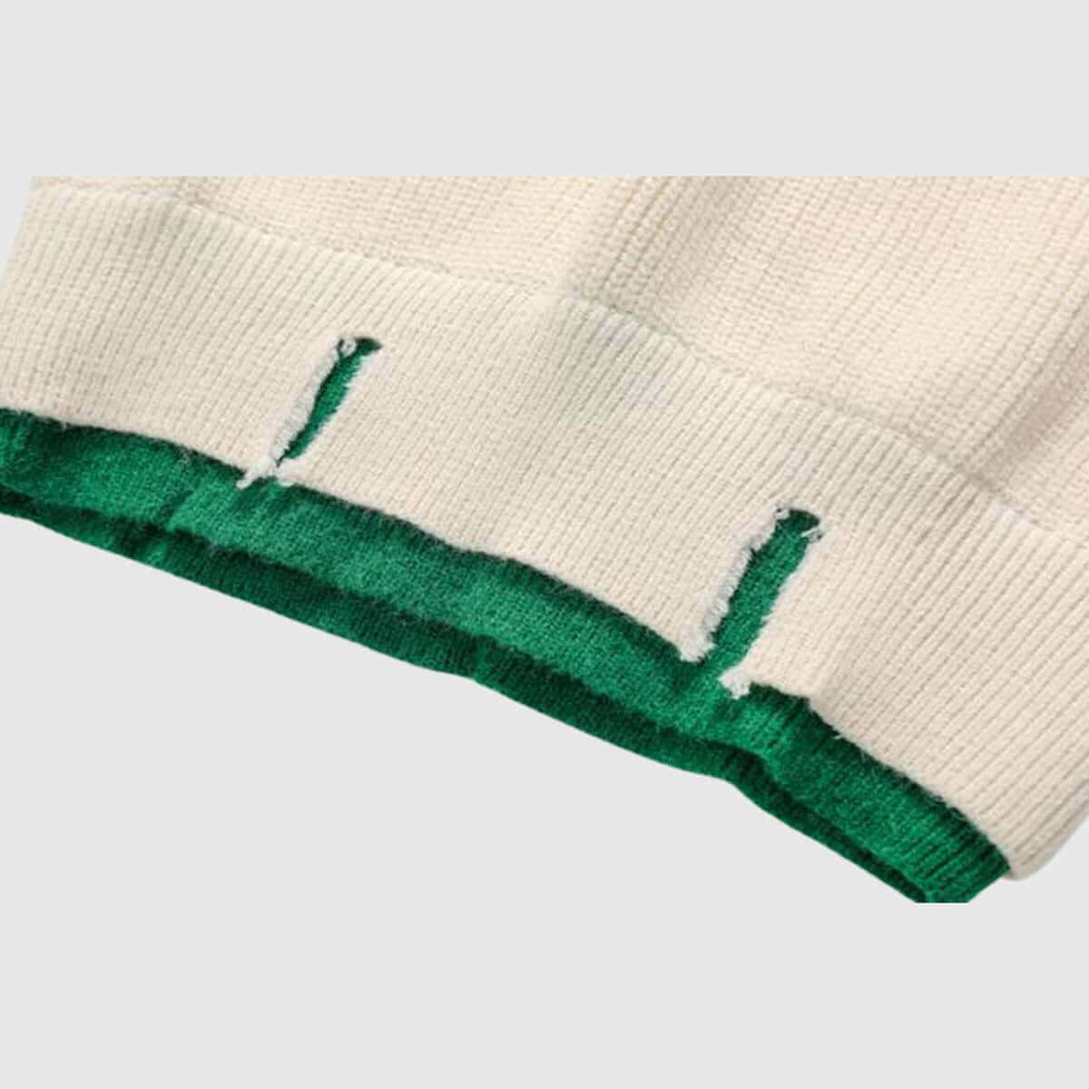 - Bold green trim on the collar, cuffs, and hem for a standout look.