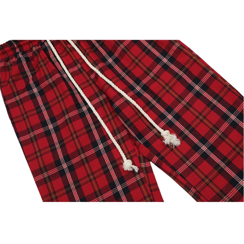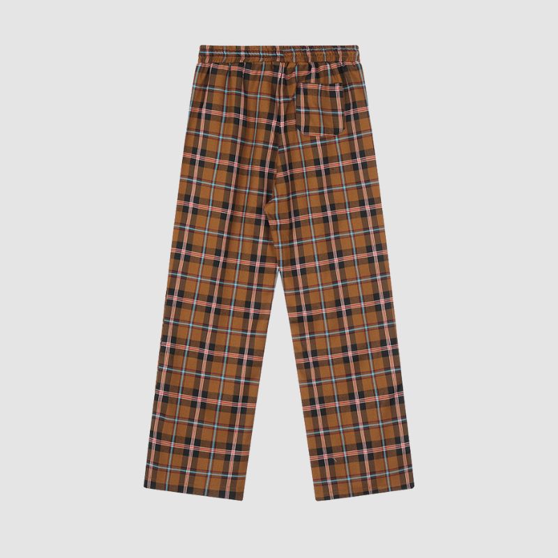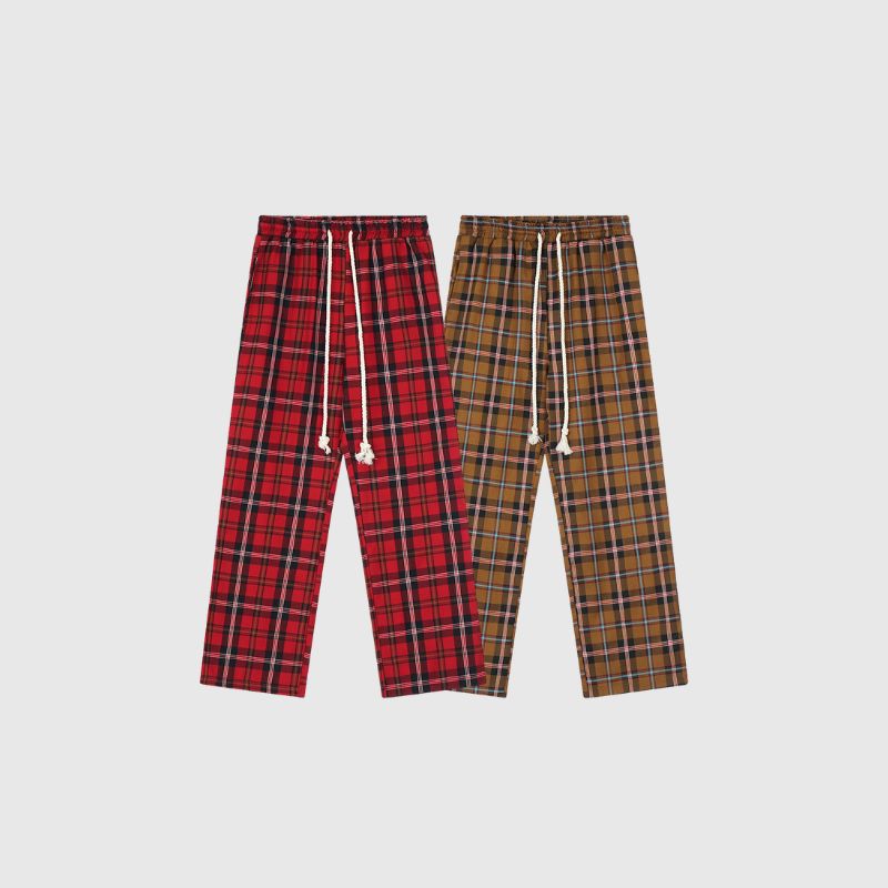 Features: Pants, wide legs, plaid design, drawstring waist, non-elastic, color contrast, straight-leg, relaxed fit, unisex, couple outfits.