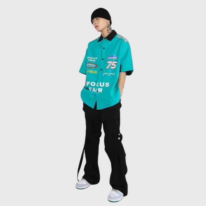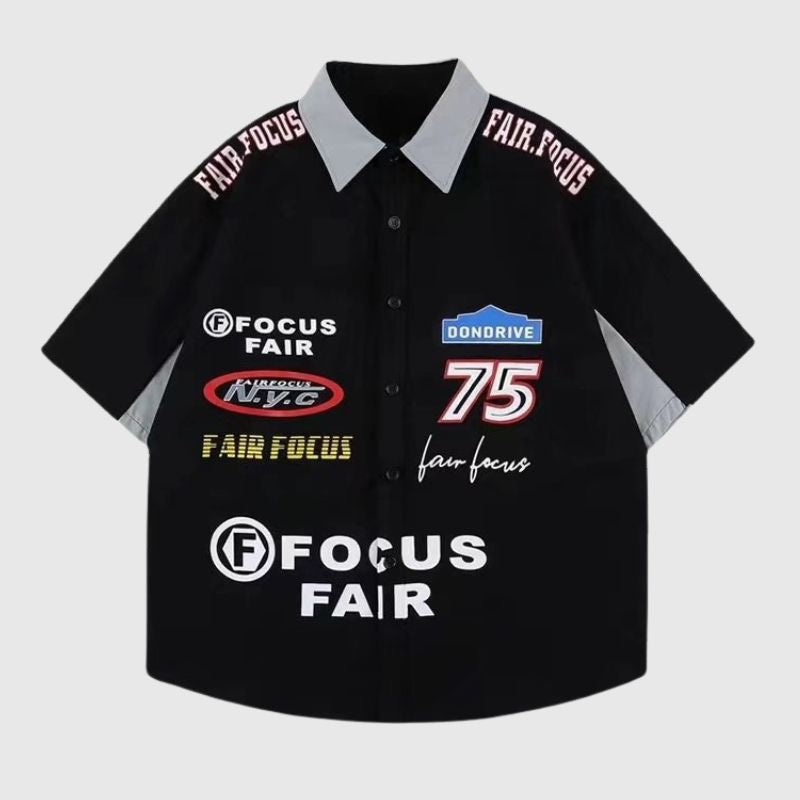 Features: Shirts, lapel, street style racing, soft and breathable, unisex, couple outfits.
