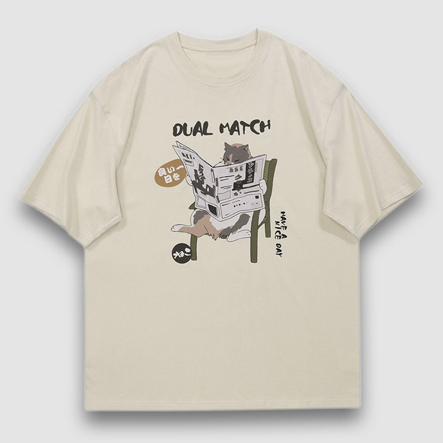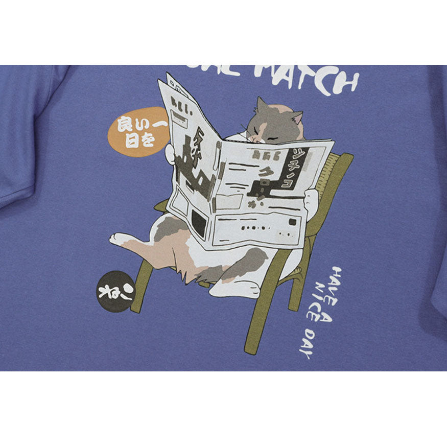 Core, New Reading Cat Cartoon Print Tee High-quality product featuring prom dresses, spring outfits, business casual outfits and more. Modern design that fits the latest trends. Premium materials ensure durability and comfort. Order now for special offers! Product designed with attention to every detail. Suitable for all occasions and personal styles.