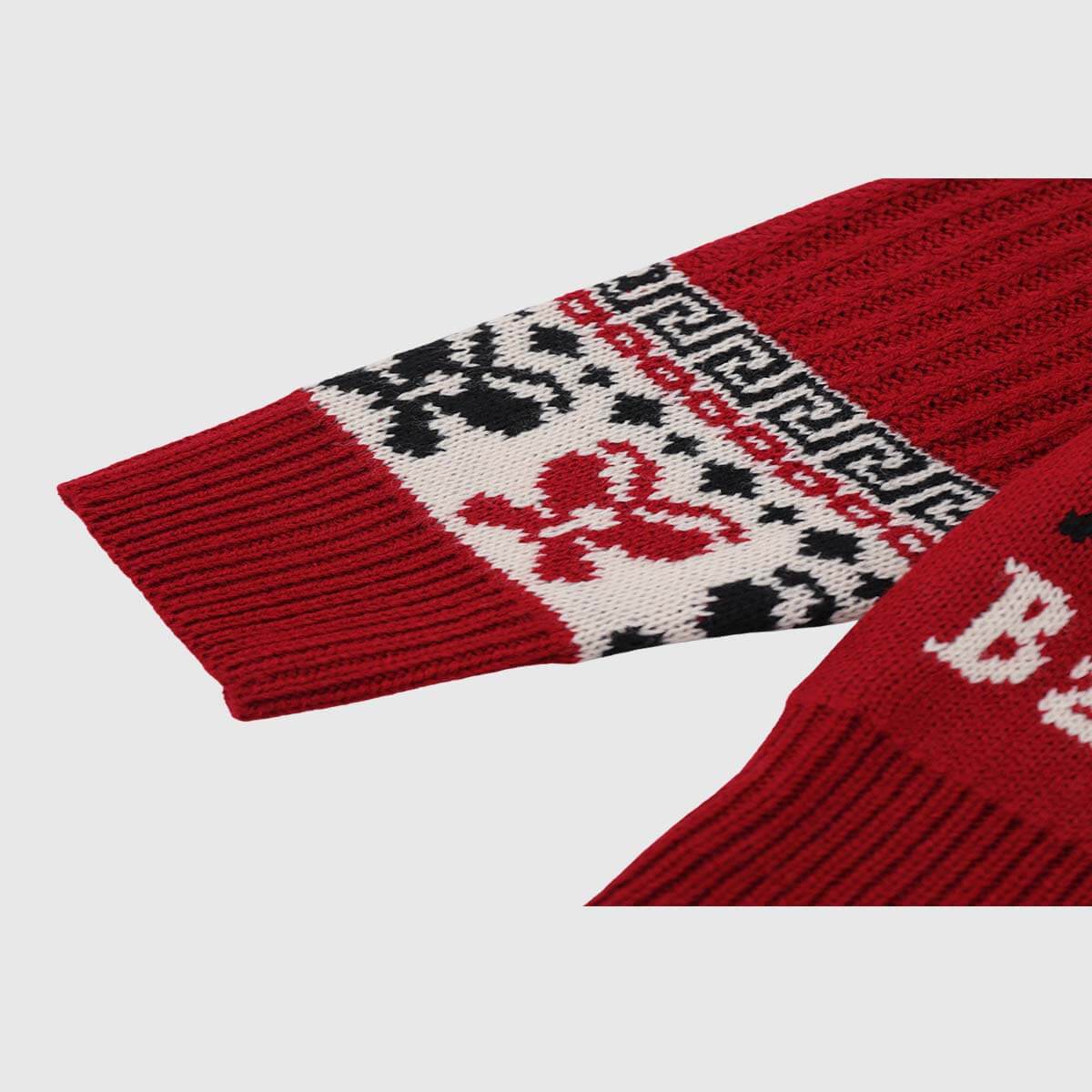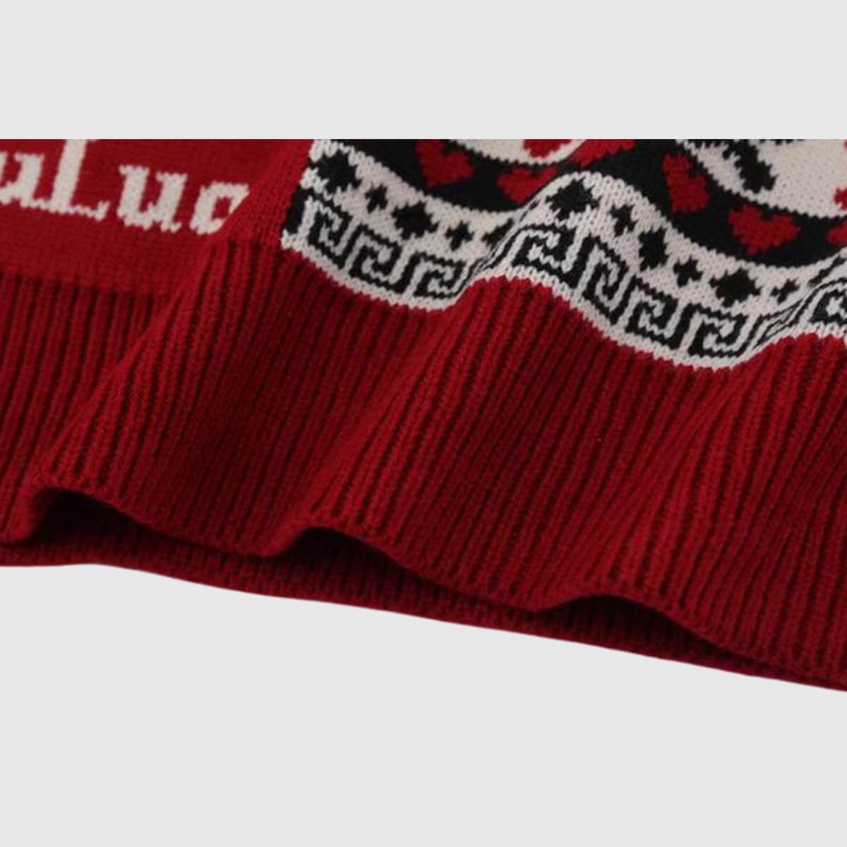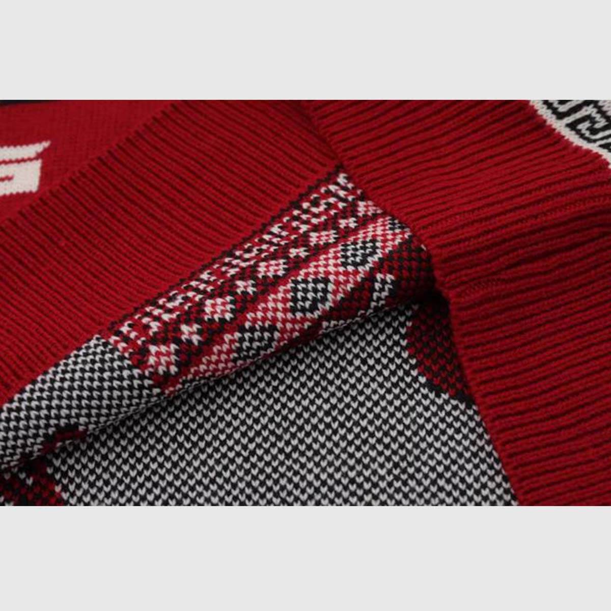- Bright red, black, and white tones add a festive touch to any outfit.