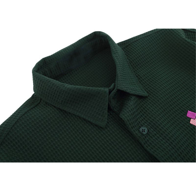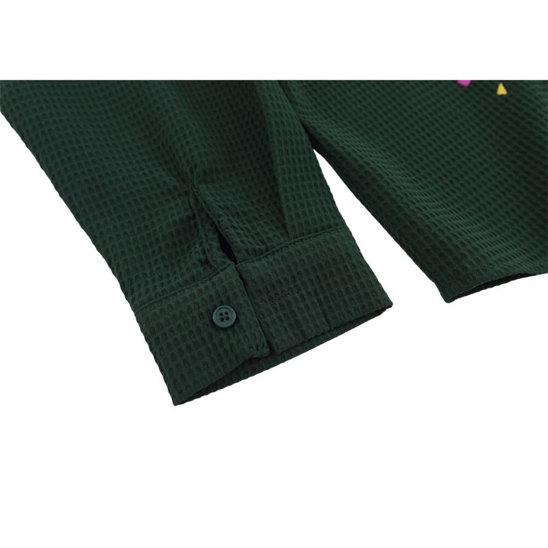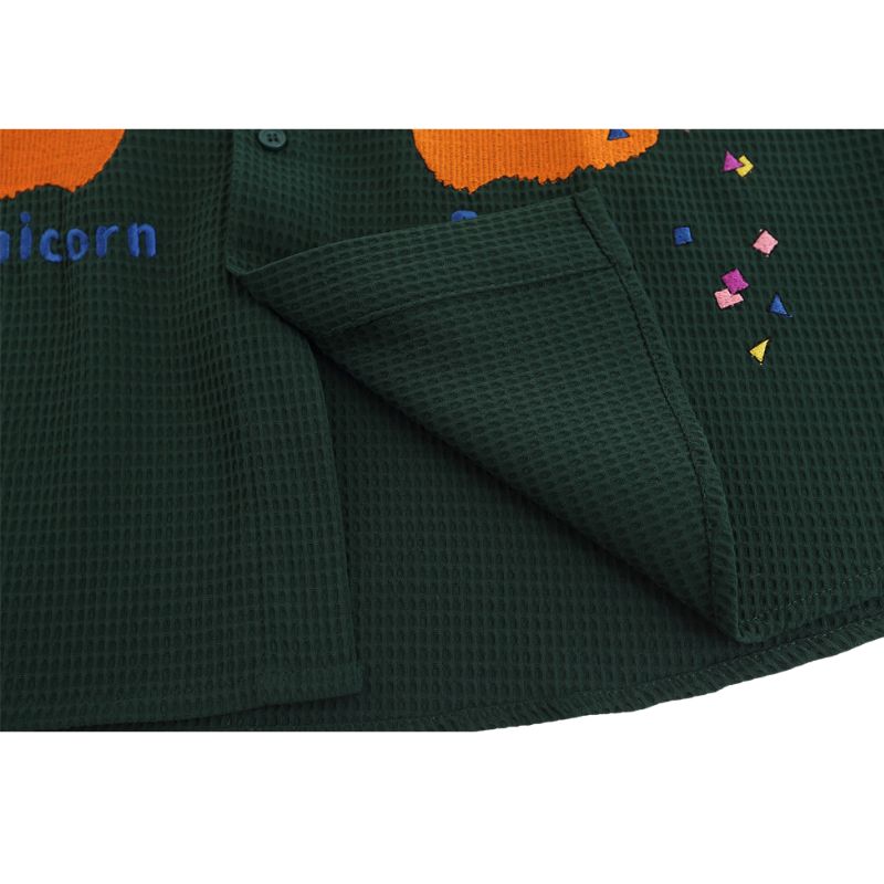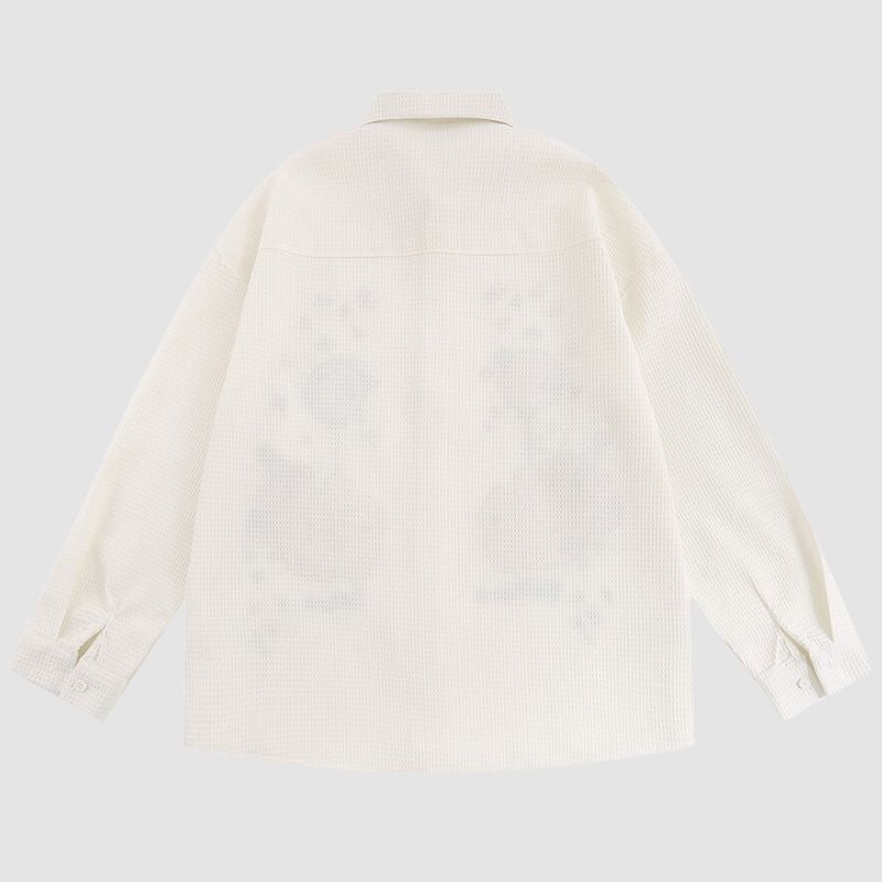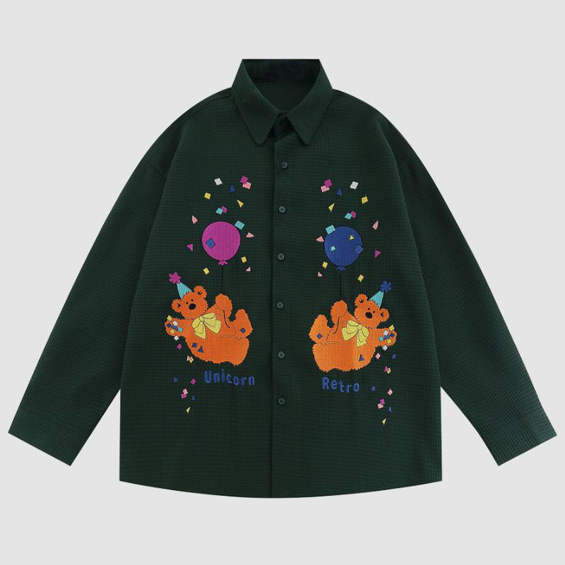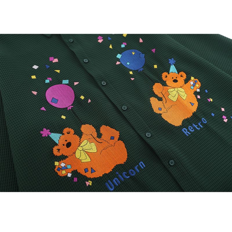 Features: Shirts, lapel, long sleeve, bear embroidered design, relaxed fit, soft and breathable, unisex, couple outfits.