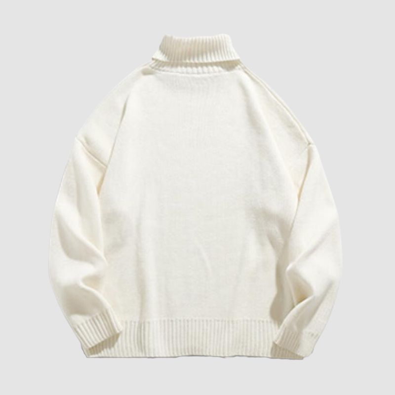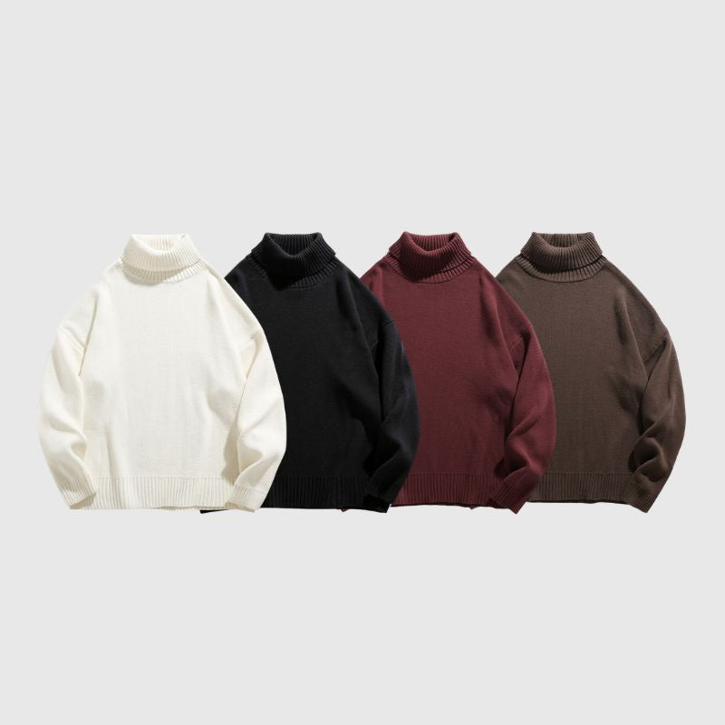 Features: Pullover, high neck, crew neck, long sleeve, solid color design, relaxed fit, jacquard weave, couple outfits.