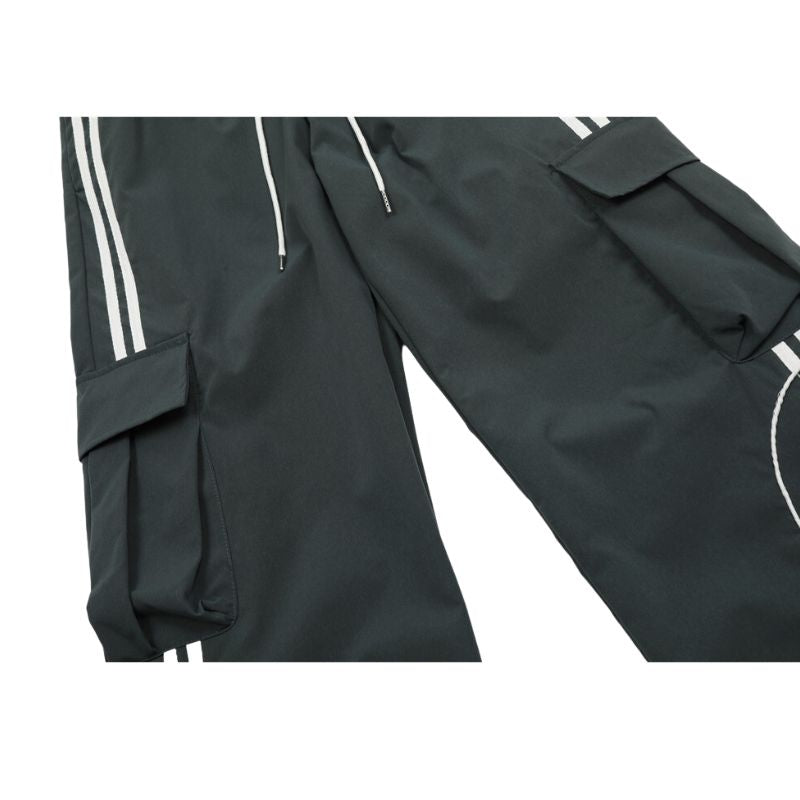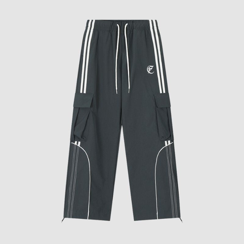 Features: Pants, stripe patchwork design, no stretchy, straight-leg, relaxed fit, unisex, couple outfits.