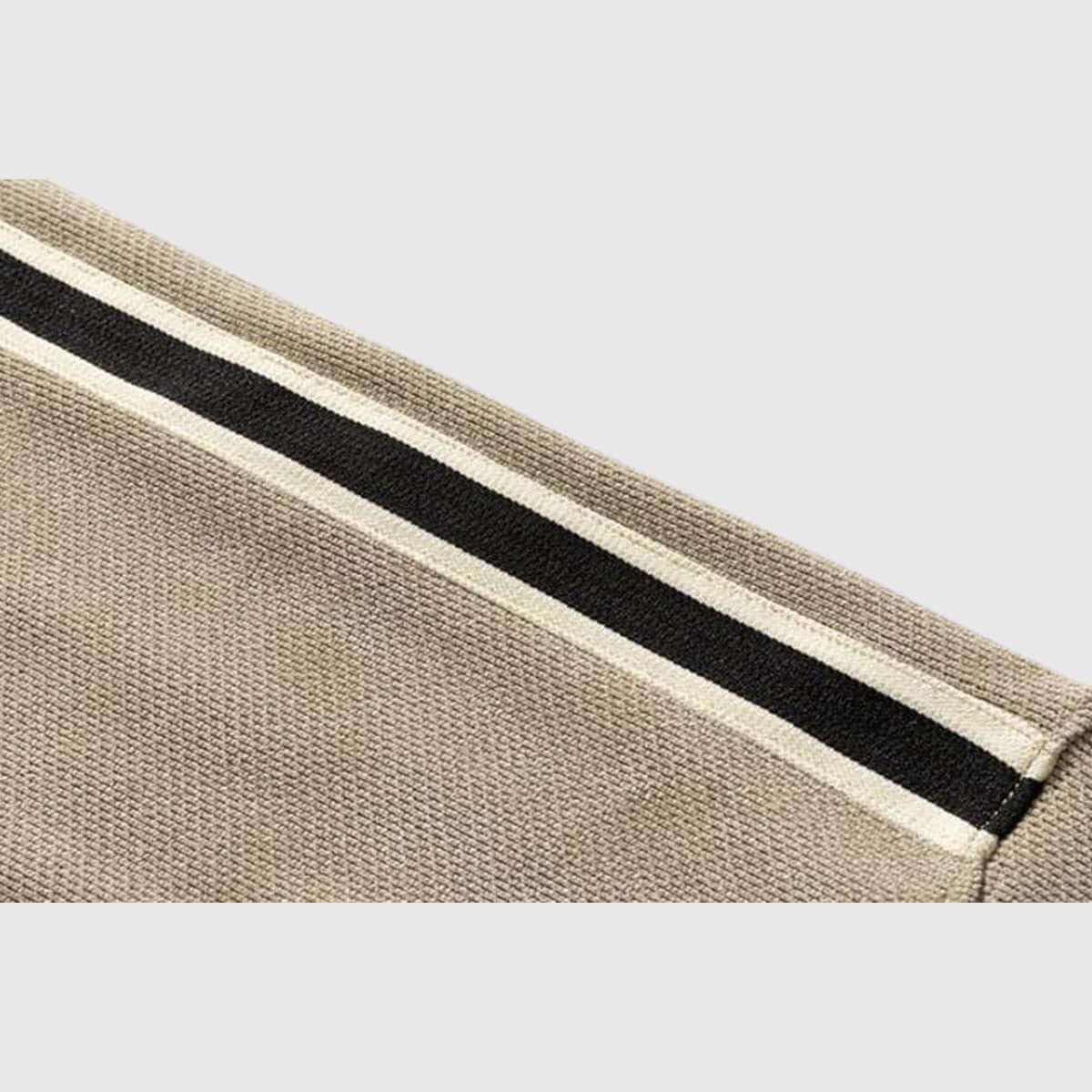 - Contrasting stripes on the sleeves add a sporty and trendy touch.