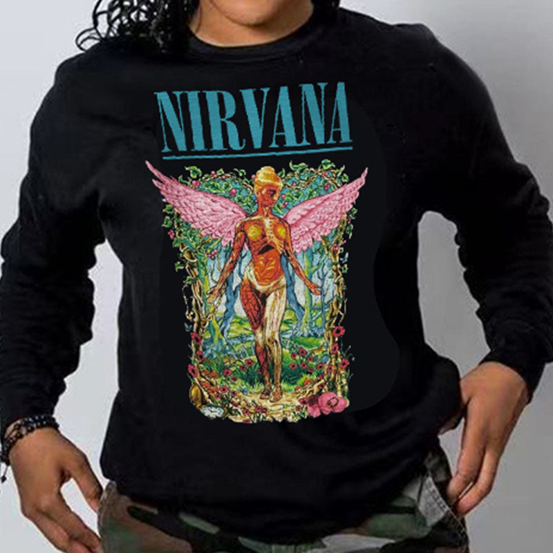Features: Hoodies, sweatshirt, crew neck, long sleeve, angel pattern printed design, unisex, couple outfits.