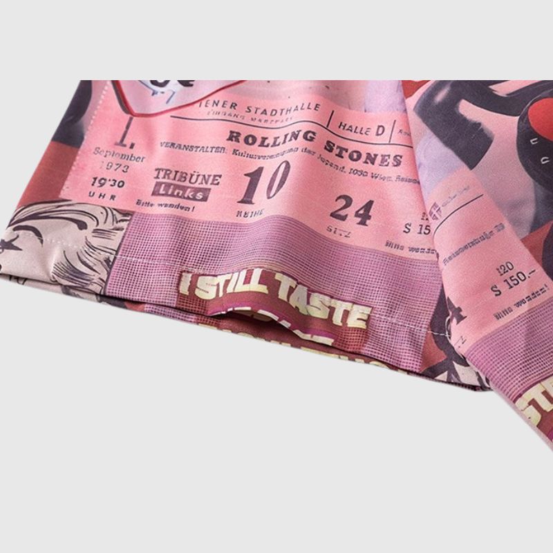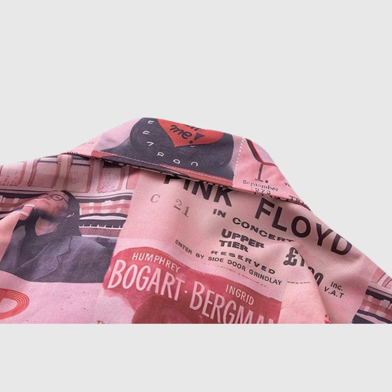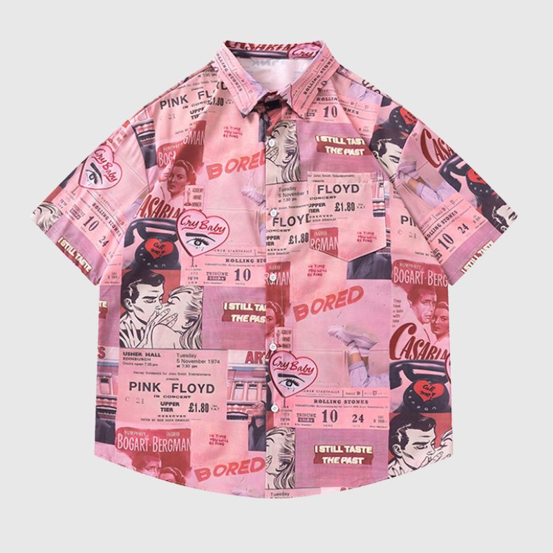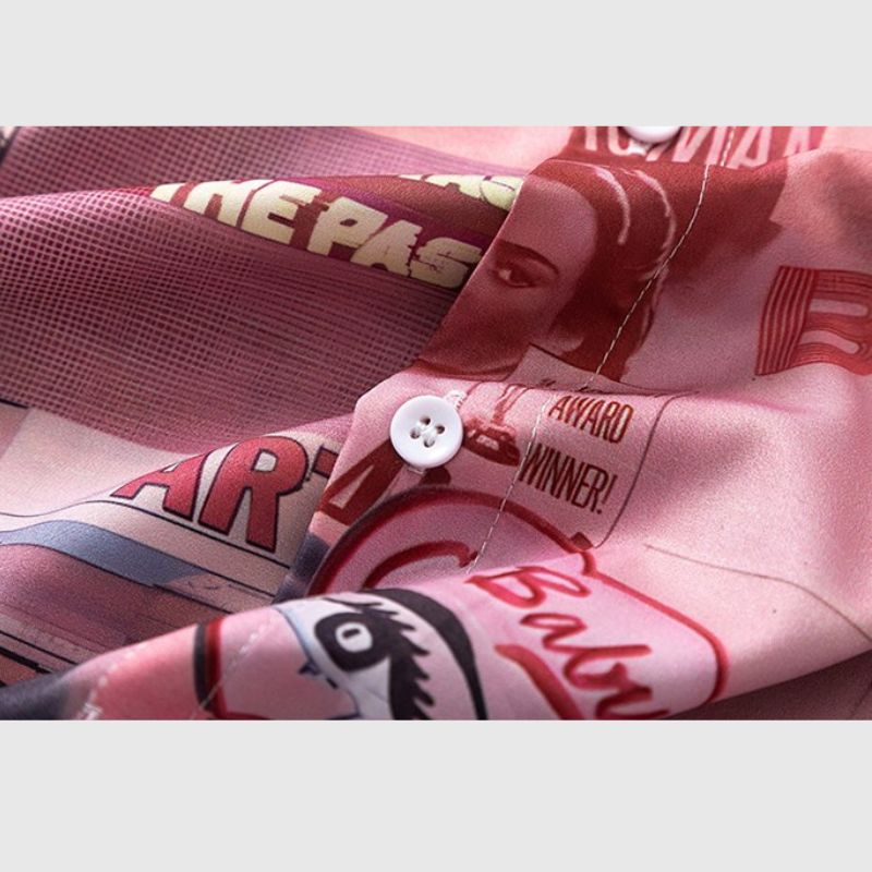 Features: Shirts, lapel, color contrast, retro creative character print, soft and breathable, unisex, couple outfits.
