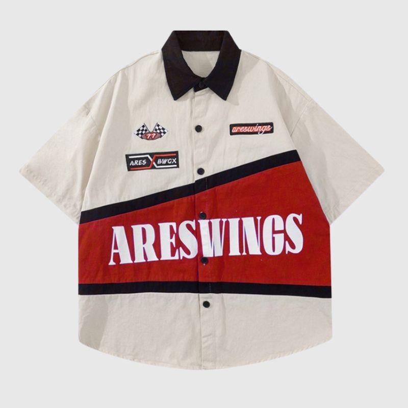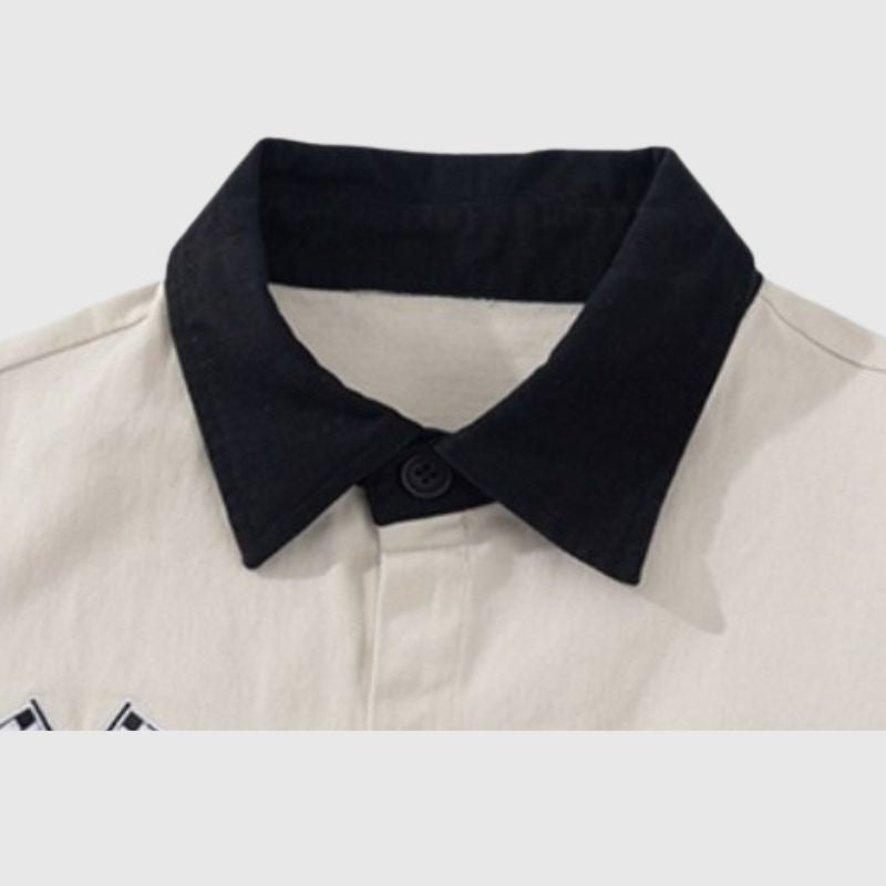 Features: Shirts, lapel, motorcycle contrasting color design, soft and breathable, unisex, couple outfits.